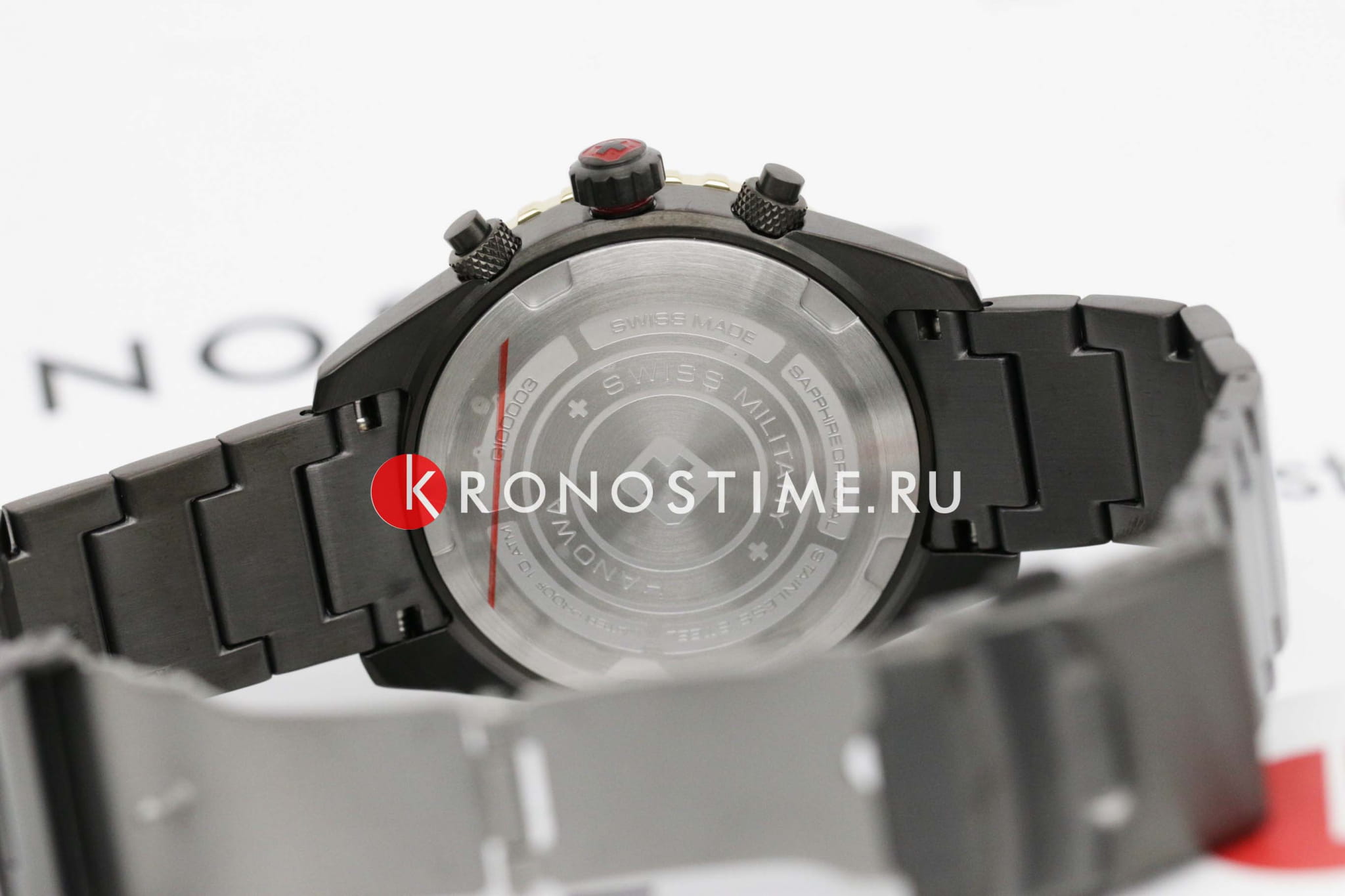 Мужские швейцарские часы c хронографомХронографФункция позволяет измерять отрезки времени с особой точностью: часы, минуты, секунды. Верным признаком хронографа является наличие на циферблате 3 дополнительных окошек-счётчиков. Swiss Military Hanowa SMWGI0000341, кварцевый механизм с высокой точностью. Сапфировое стеклоСапфировое стеклоПрочный и надёжный материал из кристалла сапфира синтетического происхождения, характеризующийся особой твёрдостью и устойчивостью к царапинам и повреждениям. устойчивое к появлению царапин, обладающее высокой прозрачностью. Класс водозащиты: 100 метров, позволит плавать, нырять и заниматься другими водными видами спорта. Корпус и браслет часов изготовлены из стали с IP-покрытиемIP-покрытиеМетод ионного напыления. Демонстрирует повышенную устойчивость к истиранию, окислению и химическим веществам. Под воздействием высокого давления и температуры около 1500°C молекулы металла надёжно соединяются с частицами корпуса часов.. Индикация даты. ТахиметрТахиметрРазмеченная шкала, располагается на ободке или безеле часов. Тахиметр позволяет рассчитать скорость на определённом участке пути, расстояние измеряется в километрах или милях.. Черный циферблат с часовыми индексами в виде штрихов. Стрелки и метки с люминесцентным покрытиемЛюминесцентное покрытиеПозволяет считывать показания времени в темноте. Производители наносят на стрелки, часовые индексы, безель или поверхность циферблата светонакопительный состав, дающий холодное свечение..