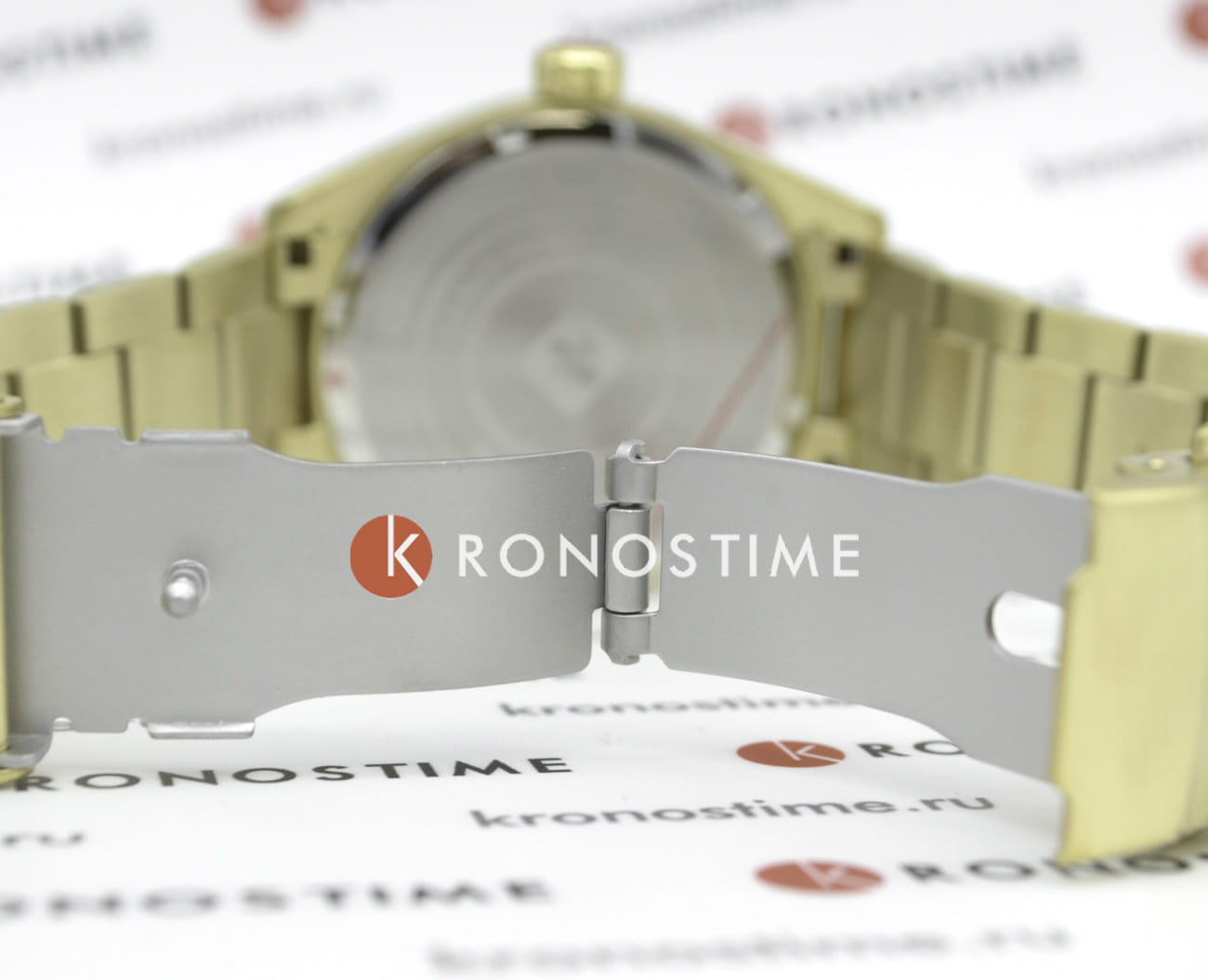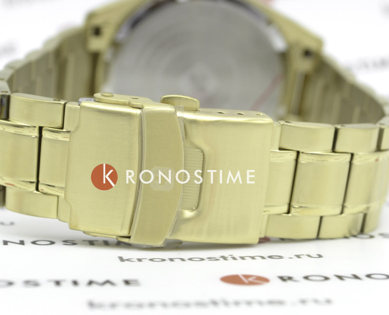 Водозащита до 100 метров (10 ATM) делает часы подходящими для плавания и других водных видов спорта. Браслет из нержавеющей стали с PVD-покрытиемPVDУльтратонкое покрытие наносится в технике вакуумного напыления, сочетает в себе нитрид титана особой прочности со слоем золота или оксида хрома. Несёт в себе декоративную или защитную функцию. и застёжкой раскладной застёжкойРаскладная застёжкаТакой тип застёжки используется только на браслетах из металла. Она никогда не раскрывается полностью, происходит разделение на 2 и более частей. Раскладывающая застёжка снизит вероятность потери часов к минимуму. обеспечивает надёжную фиксацию и комфорт при ношении.