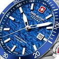 Мужские кварцевые часы Swiss Military Hanowa — швейцарская надёжность в классическом исполнении. Корпус круглый, из нержавеющей стали, диаметром 42 мм. Циферблат — синий с серебристыми стрелками. Стекло — сапфировоеСапфировое стеклоПрочный и надёжный материал из кристалла сапфира синтетического происхождения, характеризующийся особой твёрдостью и устойчивостью к царапинам и повреждениям.. Механизм — швейцарский кварцевый Ronda 505 с функцией **hack** (остановка секундной стрелки для точной настройки). БезельБезельВнешний ободок, закрепляющий стекло. В спортивных часах так называется поворотное кольцо с делениями на циферблате, выполняет роль таймера – замеряет отрезки времени на шкале. Неподвижный безель – элемент декора. Однонаправленно вращающийся безель на дайверских часах позволяет фиксировать моменты погружения и выныривания на поверхность. — неподвижный, из нержавеющей стали с IP-покрытиемIP-покрытиеМетод ионного напыления. Демонстрирует повышенную устойчивость к истиранию, окислению и химическим веществам. Под воздействием высокого давления и температуры около 1500°C молекулы металла надёжно соединяются с частицами корпуса часов.. Задняя крышка — завинчивающаяся. Водонепроницаемость 100 м. Браслет — стальной, на раскладной застёжке с кнопками и фиксаторомРаскладная застёжкаТакой тип застёжки используется только на браслетах из металла. Она никогда не раскрывается полностью, происходит разделение на 2 и более частей. Раскладывающая застёжка снизит вероятность потери часов к минимуму.. Идеальный выбор для тех, кто ценит швейцарское качество и классический стиль.