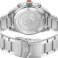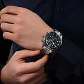 Swiss Military Hanowa Greyhound SMWGI0003804 — мужские часы-хронографХронографФункция позволяет измерять отрезки времени с особой точностью: часы, минуты, секунды. Верным признаком хронографа является наличие на циферблате 3 дополнительных окошек-счётчиков., воплощение швейцарского качества и элегантного дизайна. Эти часы идеально подойдут для уверенного в себе мужчины, ценящего стиль и надежность. Корпус часов выполнен из нержавеющей стали, что придает им современный и мужественный вид. Диаметр корпуса составляет 43 мм, что делает их универсальным аксессуаром для любого случая. Черный циферблат с серыми арабскими цифрами и стрелками светящимися в темноте благодаря люминесцентному покрытиюЛюминесцентное покрытиеПозволяет считывать показания времени в темноте. Производители наносят на стрелки, часовые индексы, безель или поверхность циферблата светонакопительный состав, дающий холодное свечение. обеспечивает отличную читаемость и подчеркивает строгий стиль модели. Сапфировое стеклоСапфировое стеклоПрочный и надёжный материал из кристалла сапфира синтетического происхождения, характеризующийся особой твёрдостью и устойчивостью к царапинам и повреждениям. защищает циферблат от царапин и повреждений, гарантируя долгий срок службы и сохранение первоначального внешнего вида часов. Часы оснащены надежным кварцевым механизмом, который обеспечивает высокую точность хода. Водозащита на уровне 100WR позволяет не беспокоиться о контакте с водой во время повседневной носки. Вращающийся в одном направлении рифленый безельБезельВнешний ободок, закрепляющий стекло. В спортивных часах так называется поворотное кольцо с делениями на циферблате, выполняет роль таймера – замеряет отрезки времени на шкале. Неподвижный безель – элемент декора. Однонаправленно вращающийся безель на дайверских часах позволяет фиксировать моменты погружения и выныривания на поверхность. с IP-покрытиемIP-покрытиеМетод ионного напыления. Демонстрирует повышенную устойчивость к истиранию, окислению и химическим веществам. Под воздействием высокого давления и температуры около 1500°C молекулы металла надёжно соединяются с частицами корпуса часов.. Стальной браслет на раскладной застёжкеРаскладная застёжкаТакой тип застёжки используется только на браслетах из металла. Она никогда не раскрывается полностью, происходит разделение на 2 и более частей. Раскладывающая застёжка снизит вероятность потери часов к минимуму. обеспечивает комфортное ношение на запястье.