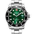 Мужские швейцарские часы Swiss Military Sealord SMWGL0006302 – это великолепные, стильные автоматические часы швейцарского производства, которые идеально подходят для дайвинга. Корпус из нержавеющей стали диаметром 41 мм сбалансирован и элегантен. Сапфировое стеклоСапфировое стеклоПрочный и надёжный материал из кристалла сапфира синтетического происхождения, характеризующийся особой твёрдостью и устойчивостью к царапинам и повреждениям. с антибликовым покрытием защищает циферблат от царапин и обеспечивает отличную читаемость при любом освещении. Браслет из нержавеющей стали с раскладной застёжкойРаскладная застёжкаТакой тип застёжки используется только на браслетах из металла. Она никогда не раскрывается полностью, происходит разделение на 2 и более частей. Раскладывающая застёжка снизит вероятность потери часов к минимуму. идеально дополняют дизайн часов, обеспечивая комфортное ношение. Люминесцентное покрытиеЛюминесцентное покрытиеПозволяет считывать показания времени в темноте. Производители наносят на стрелки, часовые индексы, безель или поверхность циферблата светонакопительный состав, дающий холодное свечение. стрелок и меток позволит вам следить за временем даже в полной темноте. Вращающийся керамический безельБезельВнешний ободок, закрепляющий стекло. В спортивных часах так называется поворотное кольцо с делениями на циферблате, выполняет роль таймера – замеряет отрезки времени на шкале. Неподвижный безель – элемент декора. Однонаправленно вращающийся безель на дайверских часах позволяет фиксировать моменты погружения и выныривания на поверхность.. Индикатор даты в положении «3 часа». Водонепроницаемость до 200 метров идеально подходят для дайвинга. Автоматический швейцарский механизм Soprod P024, который основан на знаменитом механизме ETA 2824.