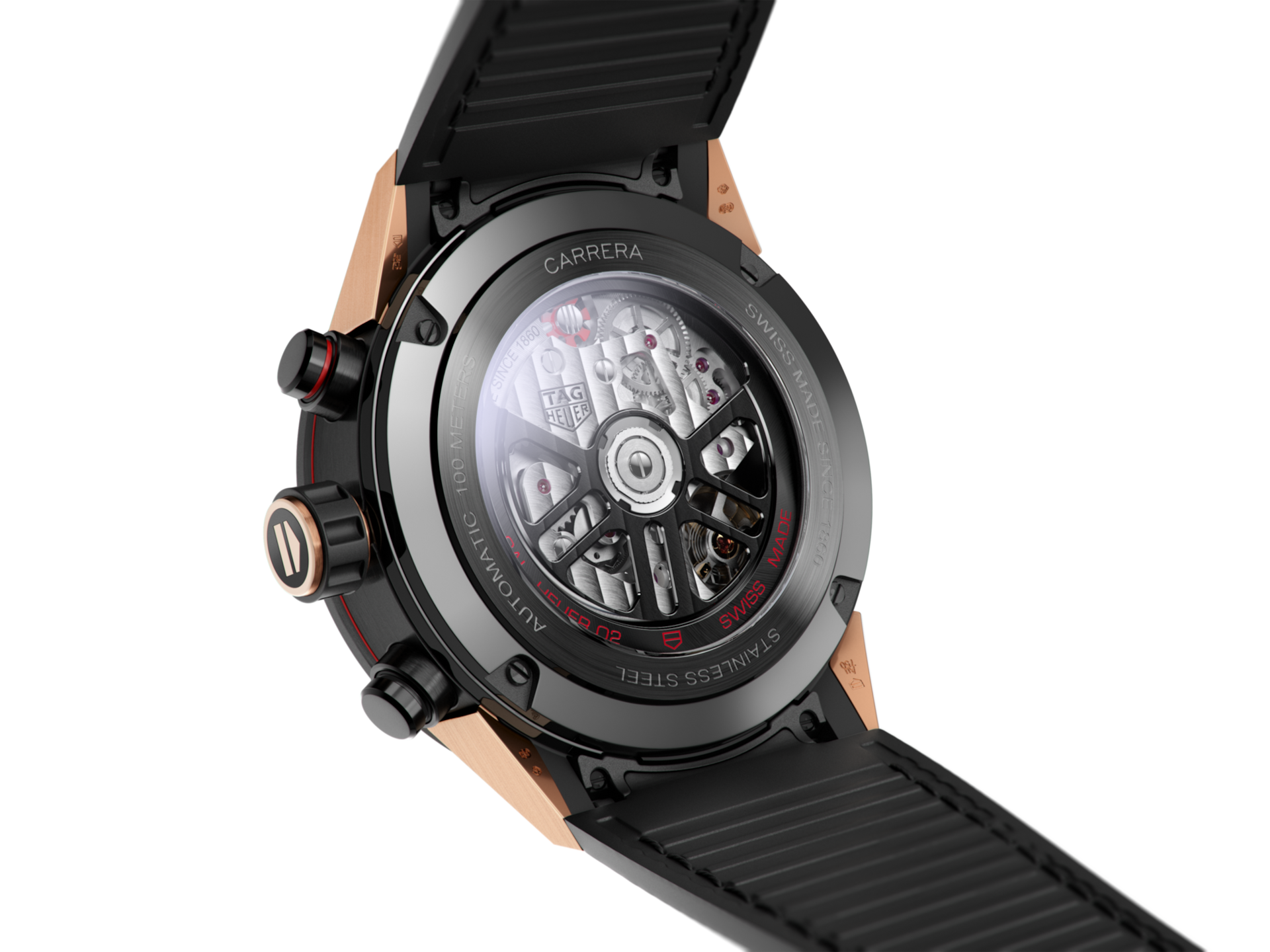 Потрясающие часы TAG Heuer Carrera Heuer 02 из стали с черным покрытием и розового золота с черным ремешком из кожи аллигатора и каучука. Этот автоматический хронограф диаметром 43 мм оснащен механизмом с запасом хода 80 часов, который хорошо просматривается через заднюю крышку из сапфирового стекла. TAG Heuer Carrera CBG2050.FC6426, механический механизм (автоматический калибр) с высокой точностью. Сапфировое стекло устойчивое к появлению царапин, обладающее высокой прозрачностью. Класс водозащиты: 100 метров, позволит плавать, нырять и заниматься другими водными видами спорта. Корпус часов изготовлен из стали, цвета.