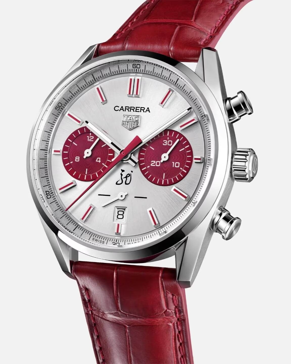 Лимитированные швейцарские часы-хронографХронографФункция позволяет измерять отрезки времени с особой точностью: часы, минуты, секунды. Верным признаком хронографа является наличие на циферблате 3 дополнительных окошек-счётчиков. TAG Heuer Carrera Chronograph CBN201H.FC6553, посвященные китайскому новому году. На задней крышке изображен изящный китайский дракон. Механический механизм (автоматический калибр) с высокой точностью. Сапфировое стеклоСапфировое стеклоПрочный и надёжный материал из кристалла сапфира синтетического происхождения, характеризующийся особой твёрдостью и устойчивостью к царапинам и повреждениям. устойчивое к появлению царапин, обладающее высокой прозрачностью. Стрелки и метки с люминесцентным покрытиемЛюминесцентное покрытиеПозволяет считывать показания времени в темноте. Производители наносят на стрелки, часовые индексы, безель или поверхность циферблата светонакопительный состав, дающий холодное свечение.. Класс водозащиты: 100 метров, позволит плавать, нырять и заниматься другими водными видами спорта. Корпус часов изготовлен из нержавеющей стали. Кожаный ремешок с раскладной застёжкойРаскладная застёжкаТакой тип застёжки используется только на браслетах из металла. Она никогда не раскрывается полностью, происходит разделение на 2 и более частей. Раскладывающая застёжка снизит вероятность потери часов к минимуму..