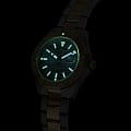 . Метки в виде штрихов. Стрелки и метки с люминесцентным покрытиемЛюминесцентное покрытиеПозволяет считывать показания времени в темноте. Производители наносят на стрелки, часовые индексы, безель или поверхность циферблата светонакопительный состав, дающий холодное свечение. Superluminova. Рифленая заводная головка с защитой. Задняя крышка с выгравированным изображением водолазного шлема.
