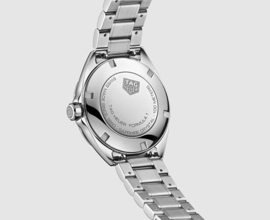 Швейцарские женские часы TAG Heuer Formula 1 — это воплощение элегантности, роскоши и точности. Модель WBJ1316.BA0666 из коллекции Formula 1 вдохновлена миром автоспорта, сочетая в себе динамику, выносливость и безупречный стиль. Корпус выполнен из высококачественной нержавеющей стали 316L, что обеспечивает долговечность и устойчивость к внешним воздействиям. Циферблат с эффектом sunray добавляет модели особую привлекательность и элегантность. Циферблат защищен прочным сапфировым стекломСапфировое стеклоПрочный и надёжный материал из кристалла сапфира синтетического происхождения, характеризующийся особой твёрдостью и устойчивостью к царапинам и повреждениям., которое не царапается при механическом воздействии и гарантирует четкую видимость показаний в любых условиях. Безель декорирован 36 бриллиантами, что делает модель особенно роскошной и премиальной. Окошко даты расположено в удобном месте на циферблате, добавляя функциональности. Механизм часов кварцевый, что гарантирует исключительную точность хода. Водозащита до 10 атм (WR100) делает эти часы подходящими для плавания и других водных видов спорта. Браслет из нержавеющей стали оснащен надежной раскладывающейся застежкой с кнопками Раскладная застёжкаТакой тип застёжки используется только на браслетах из металла. Она никогда не раскрывается полностью, происходит разделение на 2 и более частей. Раскладывающая застёжка снизит вероятность потери часов к минимуму., обеспечивающей комфортную фиксацию на запястье.