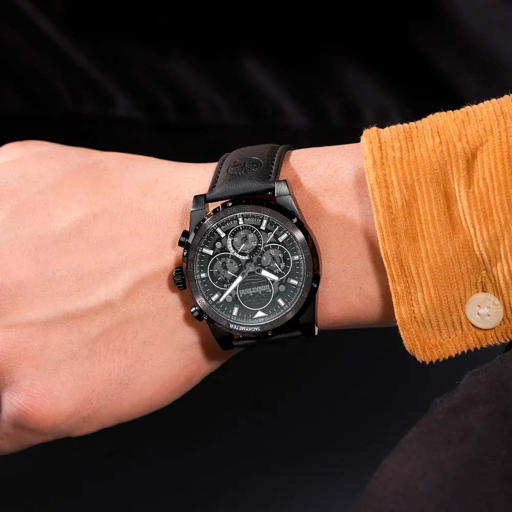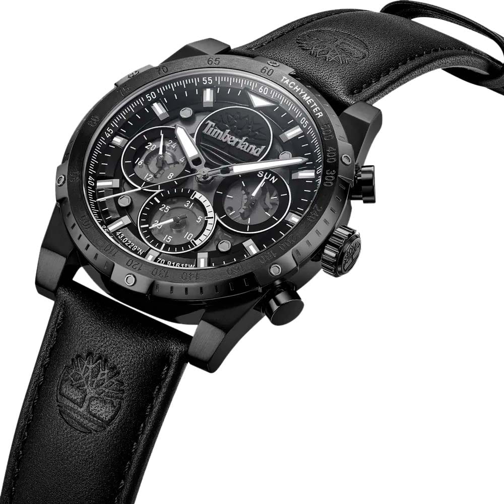 Американские мужские часы Timberland TDWGF0009402 с тахиметромТахиметрРазмеченная шкала, располагается на ободке или безеле часов. Тахиметр позволяет рассчитать скорость на определённом участке пути, расстояние измеряется в километрах или милях. имеют кварцевый механизм с высокой точностью. Класс водозащиты: 50 метров, позволит защитить корпус от случайных брызг или капель дождя. Корпус часов изготовлен из стали с PVD-покрытиемPVDУльтратонкое покрытие наносится в технике вакуумного напыления, сочетает в себе нитрид титана особой прочности со слоем золота или оксида хрома. Несёт в себе декоративную или защитную функцию.. Прочное минеральное стеклоМинеральное стеклоМинеральное стекло представляет собой искусственно выращенный минерал кварца. Такое стекло отличается особой устойчивостью к повреждениям и царапинам. Уступает по некоторым качествам сапфировому стеклу.. Стрелки c люминесцентным покрытиемЛюминесцентное покрытиеПозволяет считывать показания времени в темноте. Производители наносят на стрелки, часовые индексы, безель или поверхность циферблата светонакопительный состав, дающий холодное свечение.. Кожаный ремешок с классической застежкой и системой быстрой замены.