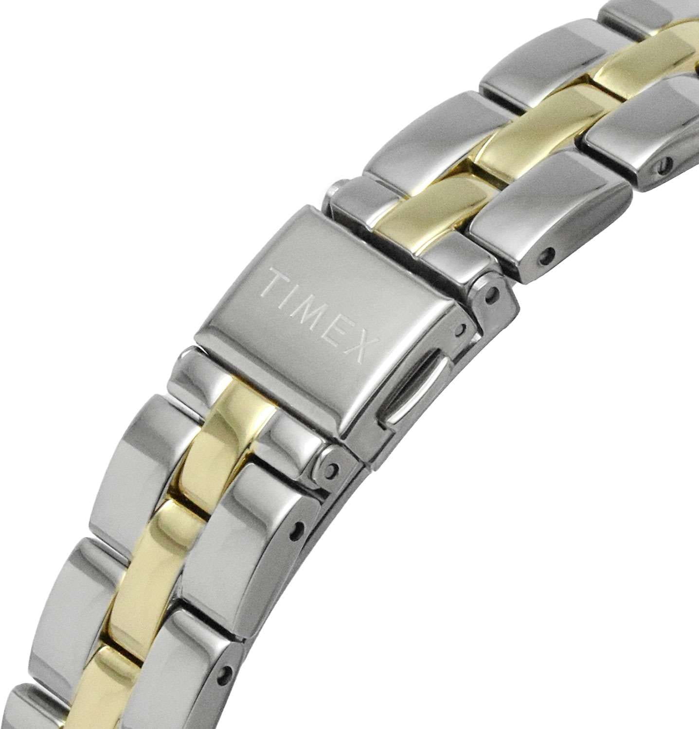 Наручные часы Timex TW2V06500 — это изящный аксессуар, который подчеркнет превосходный вкус своей обладательницы. Изготовленные в США, эти практичные женские часы оснащены надежным кварцевым механизмом, обеспечивающим точность хода. Корпус часов выполнен из латуни, которое придает изделию изысканный и современный вид. Белый циферблат украшен рельефным декоративным узором и оснащен листовидными стрелками в стиле Feuille, что обеспечивает элегантный внешний вид. Метки в виде штрихов и отсутствие секундной стрелки придают модели минималистичный стиль. Часы оснащены рифленой заводной головкой и надежным стальным браслетом с частичным PVDPVDУльтратонкое покрытие наносится в технике вакуумного напыления, сочетает в себе нитрид титана особой прочности со слоем золота или оксида хрома. Несёт в себе декоративную или защитную функцию. покрытием, который имеет раскладную застёжкуРаскладная застёжкаТакой тип застёжки используется только на браслетах из металла. Она никогда не раскрывается полностью, происходит разделение на 2 и более частей. Раскладывающая застёжка снизит вероятность потери часов к минимуму. для комфортной посадки на запястье. Водозащита 30WR позволяет носить часы в различных условиях, защищая их от случайных брызг. Минеральное стеклоМинеральное стеклоМинеральное стекло представляет собой искусственно выращенный минерал кварца. Такое стекло отличается особой устойчивостью к повреждениям и царапинам. Уступает по некоторым качествам сапфировому стеклу. защищает циферблат от царапин и повреждений, сохраняя его первозданный вид. Размеры корпуса составляют 36 мм в диаметре, а ширина браслета — 14 мм, что делает часы элегантными и подходящими для любого случая.