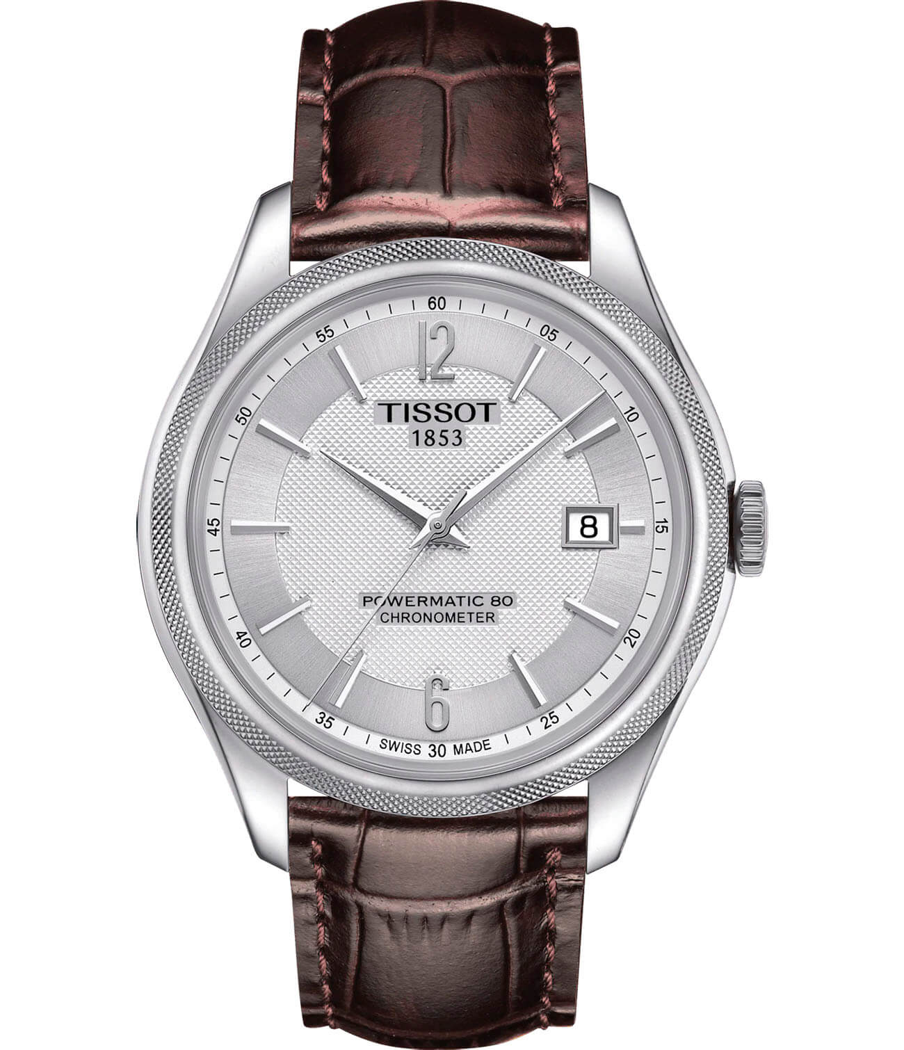 Светлый циферблат и безельБезельВнешний ободок, закрепляющий стекло. В спортивных часах так называется поворотное кольцо с делениями на циферблате, выполняет роль таймера – замеряет отрезки времени на шкале. Неподвижный безель – элемент декора. Однонаправленно вращающийся безель на дайверских часах позволяет фиксировать моменты погружения и выныривания на поверхность. дополнены лаконичным узором, классическая модель будет уместна в любой ситуации. Внутри корпуса из долговечной нержавеющей стали 316L находится автоматический калибр Powermatic 80Powermatic 80Эксклюзивный калибр от швейцарской компании ETA с увеличенным запасом хода до 80 часов за счёт удлинённой заводной пружины. Характеризуется улучшенной системой спуска со сниженным трением. с 80-часовым запасом хода, благодаря его безупречной точности часы отмечены сертификатом COSCСертификат COSCОфициальный сертификат, подтверждающий то, что часы ходят с особо высокой точностью. Для получения документа часы подвергаются тестовым испытаниям, разработанным швейцарским институтом тестирования хронометров COSC. Допустимая норма для механических часов -4/+6 секунд в день, для кварцевых моделей +/- 0,07 секунд в день.. Скелетонизированная задняя крышка. Надёжное стекло из сапфира. Коричневый ремешок из натуральной кожи. Водостойкость 50 метров. Апертура даты. . Габариты: 39 x 41 x 9,8 мм.