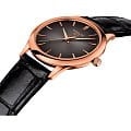 Модель в классическом исполнении точно должна быть в коллекции истинной леди. Дополнительное очарование придаёт сочетание минималистичного антрацитового циферблата и чёрного ремешка из натуральной кожи, поверхность которого сделана под кожу крокодила. Корпус сделан из 18-каратного розового золота18-каратное золотоОбозначение по каратной системе пробирования, оно показывает, сколько драгоценного металла содержится в изделии. 18 карат - в составе 75% чистого золота, соответствует 750 пробе.