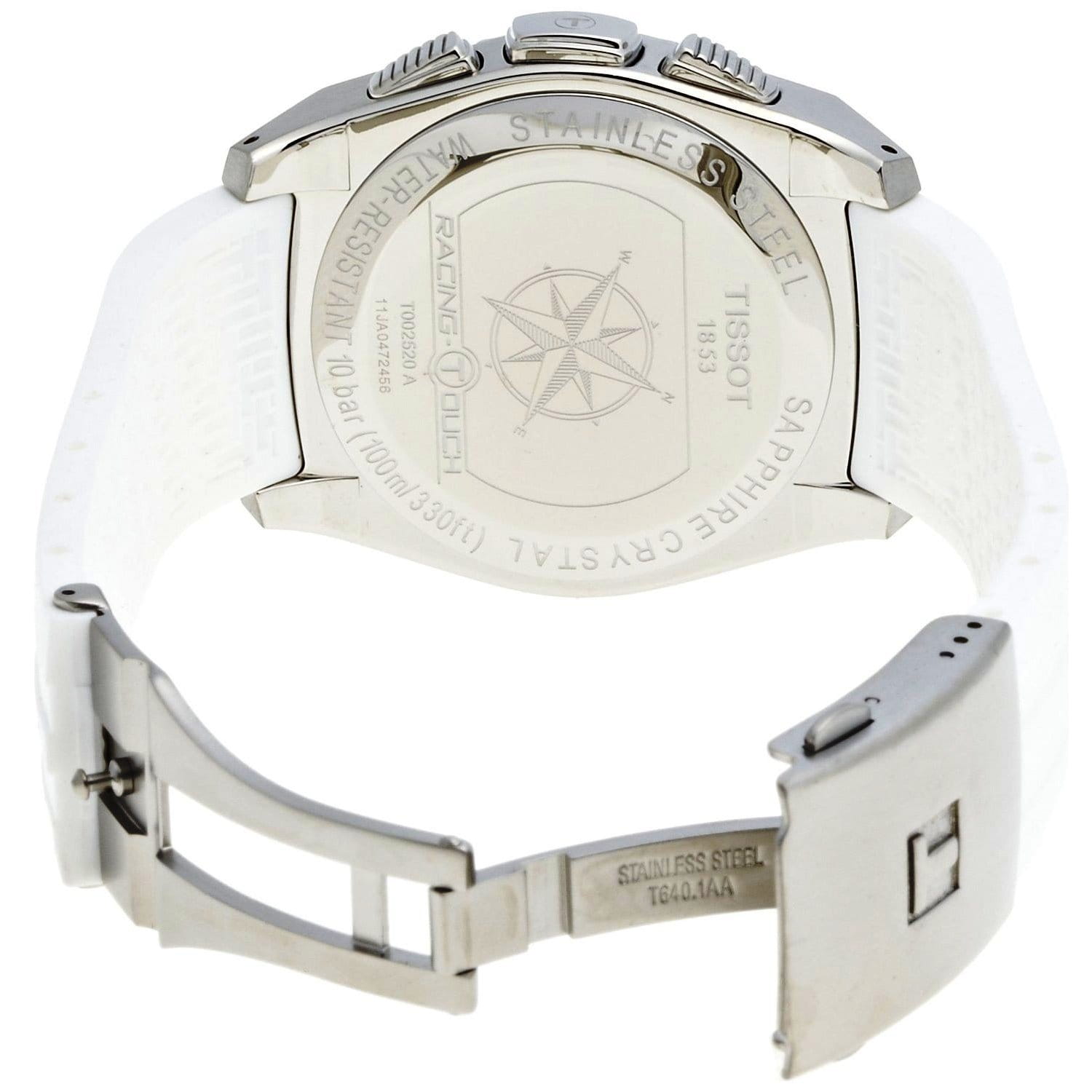 TISSOT T002.520.17.111.00 Touch Collection Racing-Touch - мужские кварцевые наручные часы. Корпус этих часов крупного размера (43 мм) и выполнен из нержавеющей стали L316 металлического цвета. Модель TISSOT T002.520.17.111.00 Touch Collection Racing-Touch имеет устойчивое к царапинам сапфировое стекло, ремешок из натурального каучука белого цвета, белый циферблат. Калибр механизма: ETA E49.301. Класс водозащиты: 100 м / 10 АТМ (разрешается плавание и ныряние без акваланга).