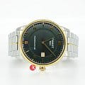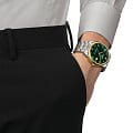 Модель стильно смотрится на мужском запястье, идеально сочетаясь с дорогим классическим костюмом. Яркий зелёный циферблат дополнен арабскими цифрами и метками, идеально подобрано серебристо-золотое общее исполнение. Наручные часы с автоподзаводом оснащены швейцарским калибром ETA Powermatic 80Powermatic 80Эксклюзивный калибр от швейцарской компании ETA с увеличенным запасом хода до 80 часов за счёт удлинённой заводной пружины. Характеризуется улучшенной системой спуска со сниженным трением. с запасом хода 80 часов. Прозрачная задняя крышка корпуса позволяет наблюдать за работой механизма. Сапфировое стекло с антибликовым покрытием. Корпус и браслет из нержавеющей стали 316L с частичным PVD-покрытиемPVDУльтратонкое покрытие наносится в технике вакуумного напыления, сочетает в себе нитрид титана особой прочности со слоем золота или оксида хрома. Несёт в себе декоративную или защитную функцию.. Водостойкость 5 бар. . Отображение даты. Габариты: 41 x 41 x 9,8 мм.