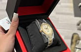 Наручные часы обладают классическим дизайном, за счёт чего аксессуар можно носить как с деловым костюмом на работу, так и с вечерним нарядом. Модель из нержавеющей стали имеет PVD-покрытиеPVDУльтратонкое покрытие наносится в технике вакуумного напыления, сочетает в себе нитрид титана особой прочности со слоем золота или оксида хрома. Несёт в себе декоративную или защитную функцию. в цвете жёлтого золота, что привносит в общее исполнение оттенок роскоши. Кварцевый швейцарский механизм ETA 955.412 с высокой точностью хода. Люминесцентная подсветкаЛюминесцентное покрытиеПозволяет считывать показания времени в темноте. Производители наносят на стрелки, часовые индексы, безель или поверхность циферблата светонакопительный состав, дающий холодное свечение.. Сапфировое стекло. . Календарь. Габариты: 36 x 36 x 9 мм.