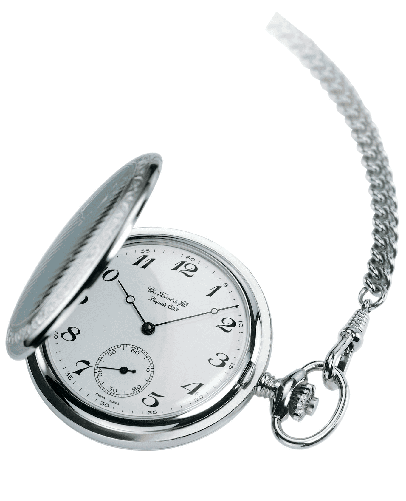 Винтажная модель на цепочке позволит прикоснуться к истории часового искусства Tissot. Задняя крышка украшена узором, белый циферблат дополняют тонкие ажурные стрелки. Механические часы с ручным заводом оснащены калибром ETA 6498-1 с 17 камнями и с запасом хода до 46 часов. Минеральное стекло отличается устойчивостью к появлению царапин. Габариты: 49,4 x 49,4 x 13,13 мм.