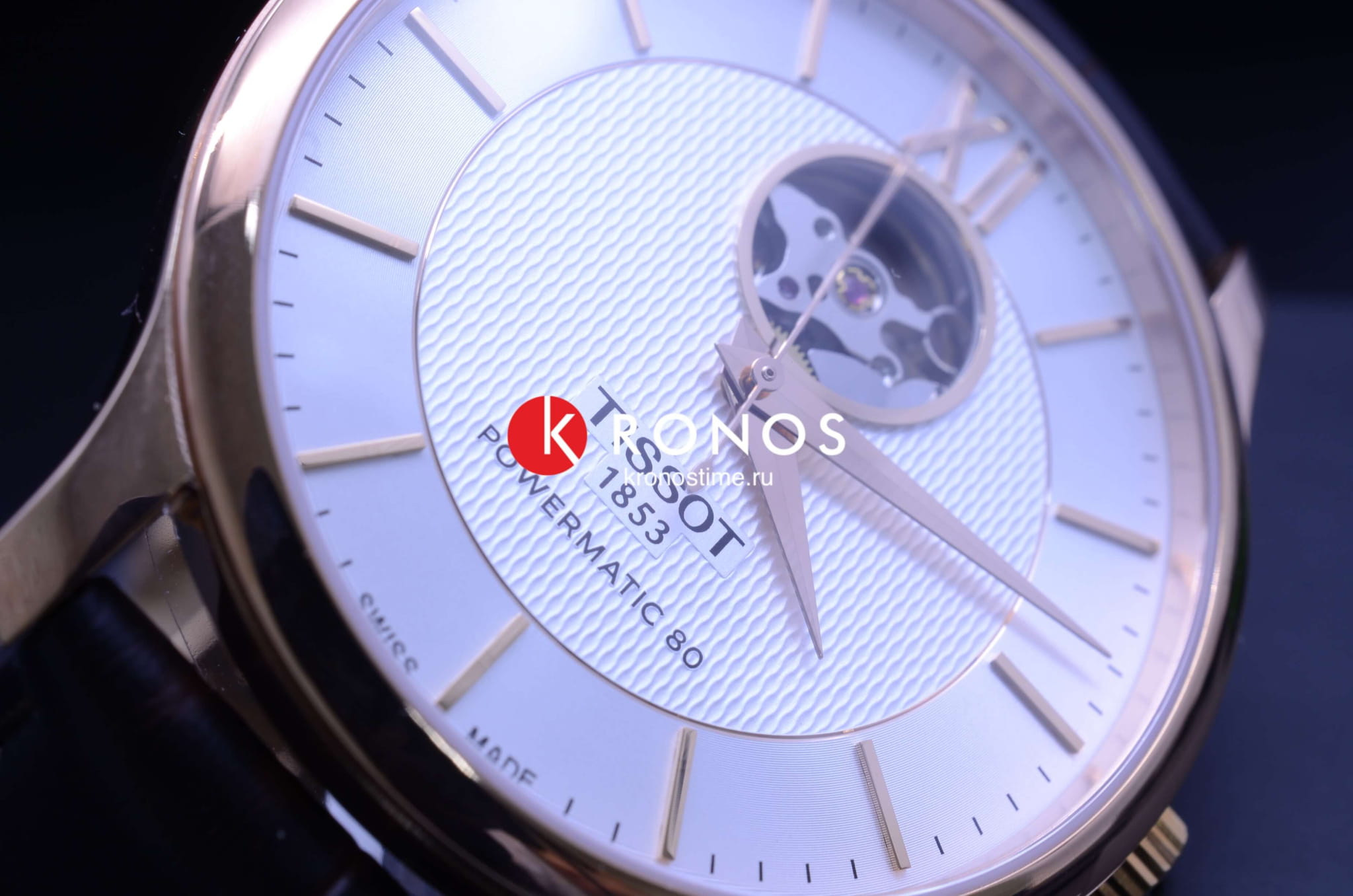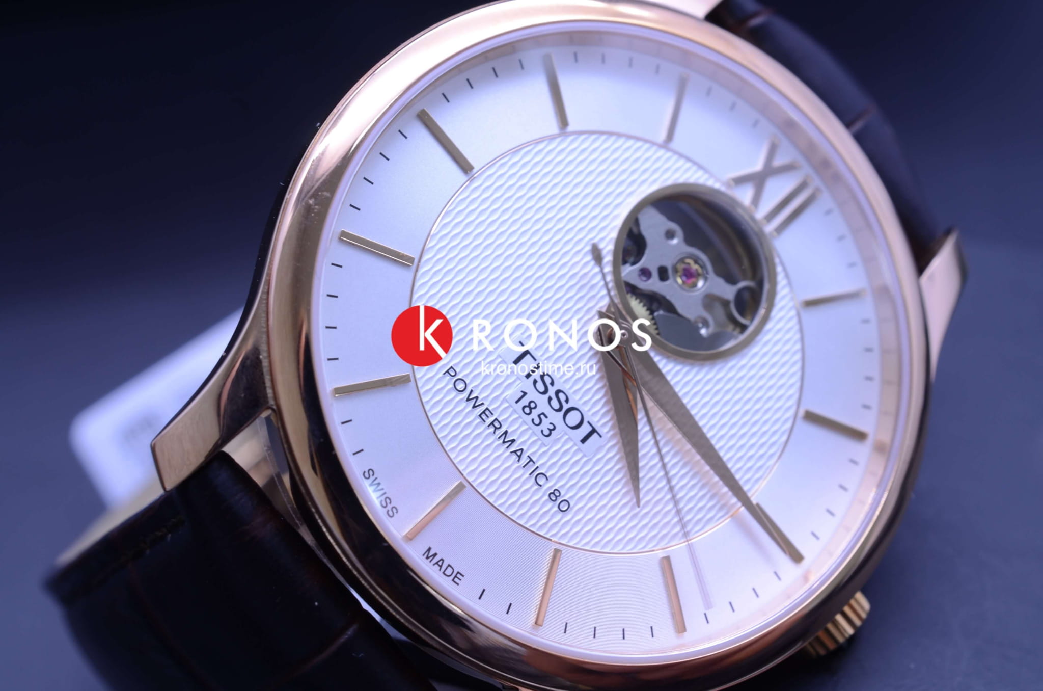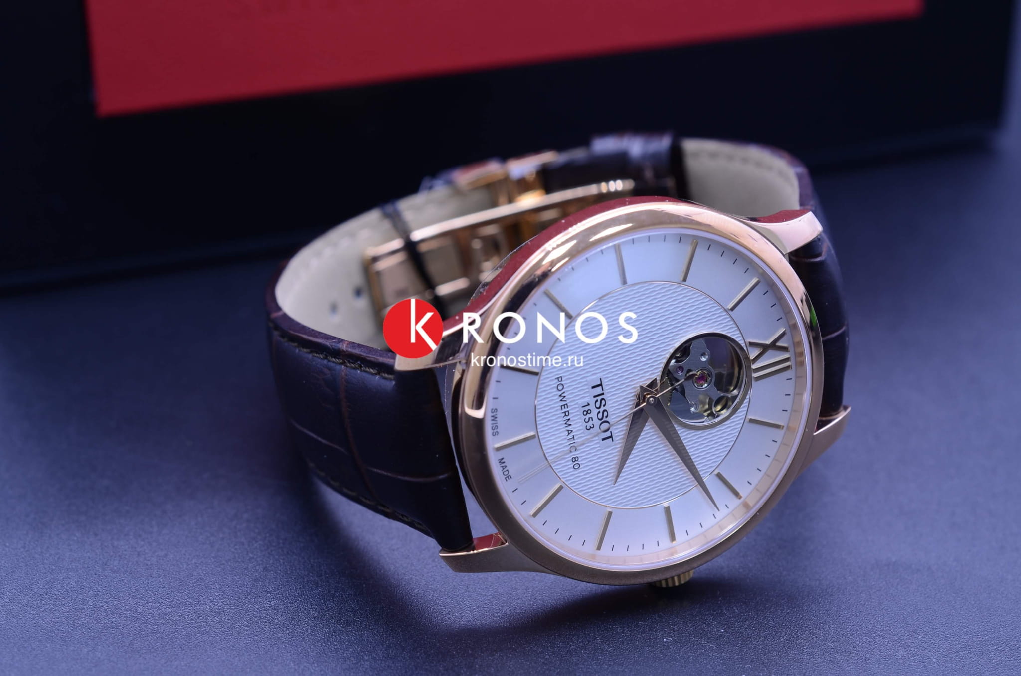 Швейцарские мужские механические часы Tissot Tradition Powermatic 80 Open Heart T063.907.36.038.00