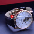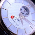 Корпус с PVD-покрытиемPVDУльтратонкое покрытие наносится в технике вакуумного напыления, сочетает в себе нитрид титана особой прочности со слоем золота или оксида хрома. Несёт в себе декоративную или защитную функцию. цвета розового золота идеально обрамляет минималистичный циферблат белого оттенка, в середине можно наблюдать оригинальный узор. Отверстие в циферблате и прозрачная задняя крышка позволяют владельцу смотреть за работой механизма. Часы с автоподзаводом оснащены популярным калибром Powermatic 80Powermatic 80Эксклюзивный калибр от швейцарской компании ETA с увеличенным запасом хода до 80 часов за счёт удлинённой заводной пружины. Характеризуется улучшенной системой спуска со сниженным трением. с запасом хода 80 часов. Сапфировое стекло отличается устойчивостью к возникновению царапин и отметин. Габариты: 40 x 40 x 9,4 мм.