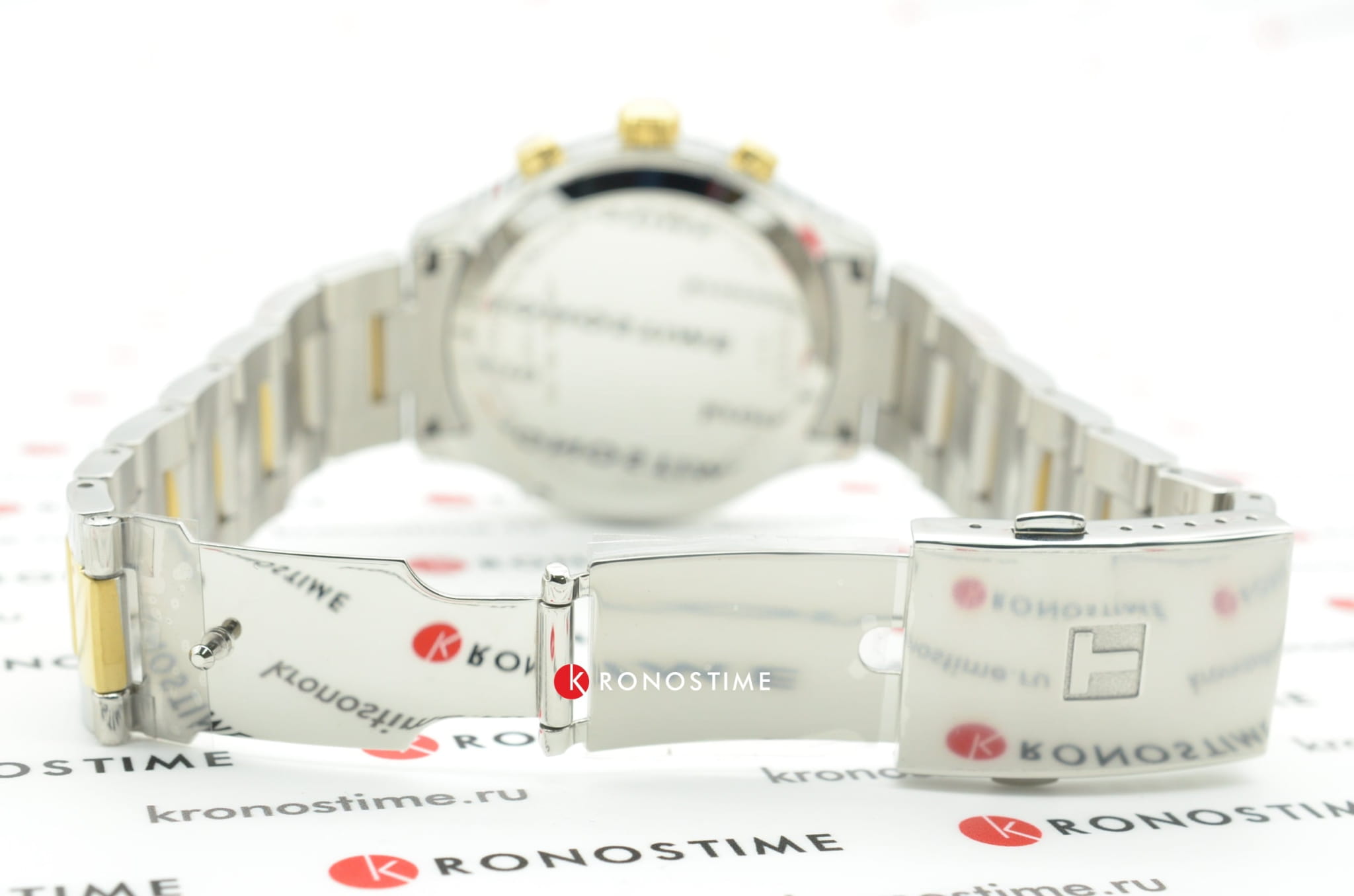 Мужской хронографХронографФункция позволяет измерять отрезки времени с особой точностью: часы, минуты, секунды. Верным признаком хронографа является наличие на циферблате 3 дополнительных окошек-счётчиков. не только позволяет измерять временные промежутки с особой точностью, но и выполняет роль элегантного аксессуара. Циферблат цвета шампань сразу бросается в глаза, три дополнительных счётчика привносят в общий облик модели спортивный стиль. Наручные часы изготовлены из нержавеющей стали с PVD-покрытиемPVDУльтратонкое покрытие наносится в технике вакуумного напыления, сочетает в себе нитрид титана особой прочности со слоем золота или оксида хрома. Несёт в себе декоративную или защитную функцию., тяжесть материала приятно ощущается на запястье и не доставляет неудобств. Кварцевый механизм ETA G10.212. Люминесцентная подсветка. Высокие показатели водозащиты. Габариты: 45 x 45 x 11 мм. Производство и сборка: Швейцария.