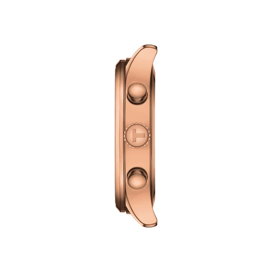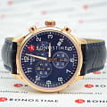 Опции хронографаХронографФункция позволяет измерять отрезки времени с особой точностью: часы, минуты, секунды. Верным признаком хронографа является наличие на циферблате 3 дополнительных окошек-счётчиков., секундомера, календаря превращают прибор для измерения времени в многофункционального помощника. Корпус увеличенного размера (45 мм) изготовлен из нержавеющей стали с золотистым PVD-покрытиемPVDУльтратонкое покрытие наносится в технике вакуумного напыления, сочетает в себе нитрид титана особой прочности со слоем золота или оксида хрома. Несёт в себе декоративную или защитную функцию., внутри находится популярный кварцевый калибр ETA G10.212. Сапфировое стеклоСапфировое стеклоПрочный и надёжный материал из кристалла сапфира синтетического происхождения, характеризующийся особой твёрдостью и устойчивостью к царапинам и повреждениям. устойчиво к появлению царапин. Водонепроницаемость 100 метров. Габариты: 45 x 45 x 11 мм.
