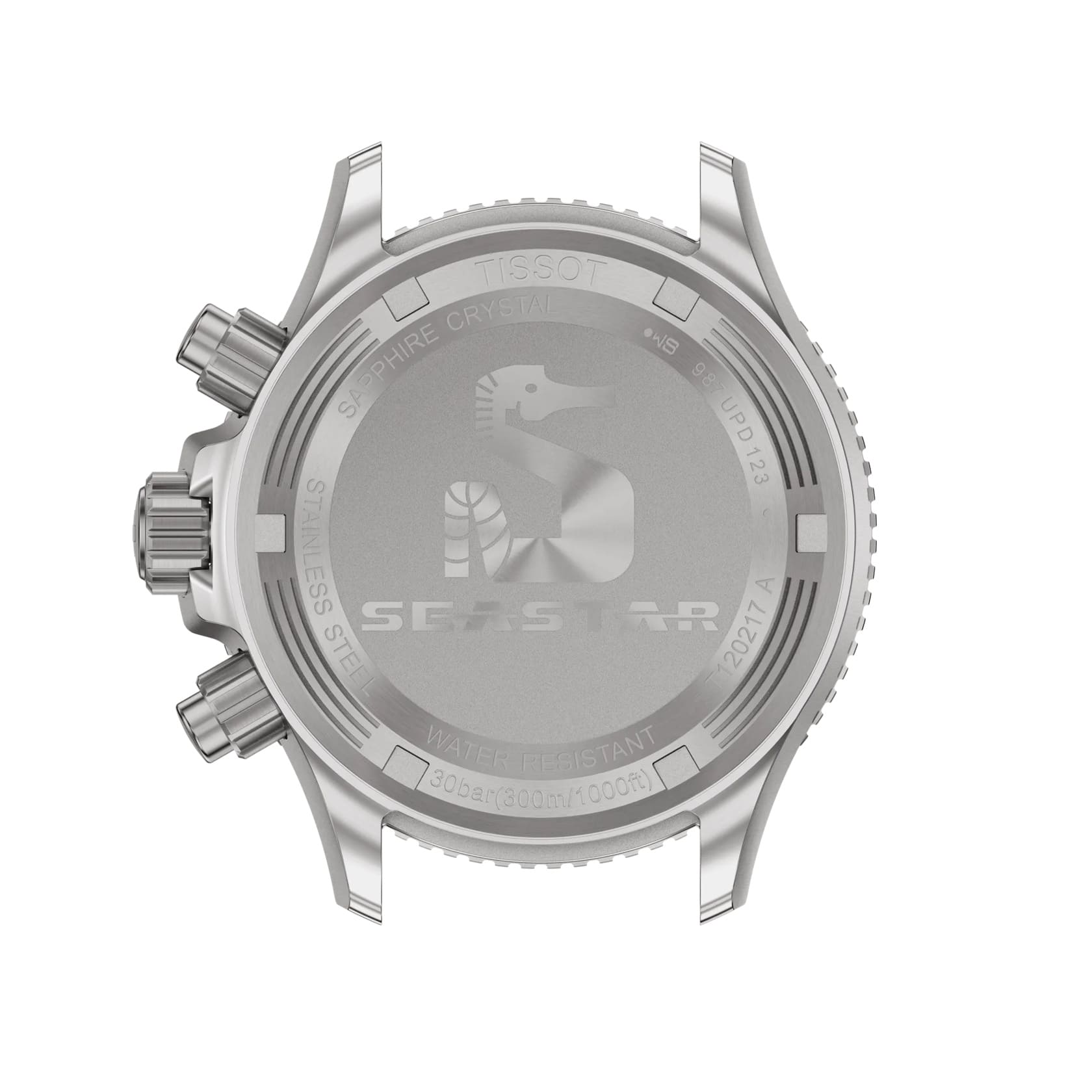 Часы Tissot Seastar 1000 Quartz Chronograph T120.217.11.061.00 выполнены в спортивном стиле и созданы для тех, кто ценит точность и надёжность на воде и на суше. Модель диаметром 38 мм изготовлена из нержавеющей стали 316L , имеет водозащиту 30 бар (300WR) , что позволяет использовать их при занятиях дайвингом. Корпус оснащён вращающимся безелем против часовой стрелки , завинчивающейся головкой и задней крышкой , а также сапфировым стеклом с двусторонним антибликовым покрытием сапфировое стеклоСапфировое стеклоПрочный и надёжный материал из кристалла сапфира синтетического происхождения, характеризующийся особой твёрдостью и устойчивостью к царапинам и повреждениям. и антибликовым покрытиемАнтибликовое покрытиеСлой оксида металла в 0,13-0,3 микрон, благодаря которому стекло часов не бликует и не отражает свет. Антибликовое покрытие уменьшает отражение света в 10 раз, обеспечивая отличную читаемость показателей циферблата.. Механизм кварцевый с батарейкой Renata 394 обеспечивает высокую точность хода. Часы имеют функции хронографа хронографХронографФункция позволяет измерять отрезки времени с особой точностью: часы, минуты, секунды. Верным признаком хронографа является наличие на циферблате 3 дополнительных окошек-счётчиков. с таймером 30 минут и отсчёт до 1/10 секунды, центральную секундную стрелку хронографа, окошко даты и функцию индикации разряда батареи EOLEOLПредставляет собой систему, уведомляющую владельца часов о необходимости замены элемента питания. За 2 недели до полного разряда батарейки секундная стрелка перестаёт ходить чётко и начинает перепрыгивать на 3-4 деления.. Циферблат градиентного серо-чёрного цвета дополнен люминесцентным покрытием Super-LumiNova® люминесцентное покрытиеЛюминесцентное покрытиеПозволяет считывать показания времени в темноте. Производители наносят на стрелки, часовые индексы, безель или поверхность циферблата светонакопительный состав, дающий холодное свечение. для чёткого отсчёта времени в условиях низкой освещённости. Индексы и стрелки легко читаются даже под водой. Браслет выполнен из нержавеющей стали 316L серого цвета и оснащён раскладной застёжкой с кнопками безопасности раскладная застёжкаРаскладная застёжкаТакой тип застёжки используется только на браслетах из металла. Она никогда не раскрывается полностью, происходит разделение на 2 и более частей. Раскладывающая застёжка снизит вероятность потери часов к минимуму. для комфортного ношения. Браслет можно быстро заменить благодаря системе quick release раскладной застёжкеРаскладная застёжкаТакой тип застёжки используется только на браслетах из металла. Она никогда не раскрывается полностью, происходит разделение на 2 и более частей. Раскладывающая застёжка снизит вероятность потери часов к минимуму.. Это сочетание прочности, технологичности и универсального дизайна для уверенных в себе мужчин.