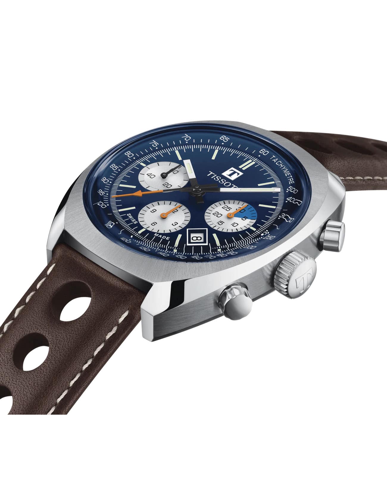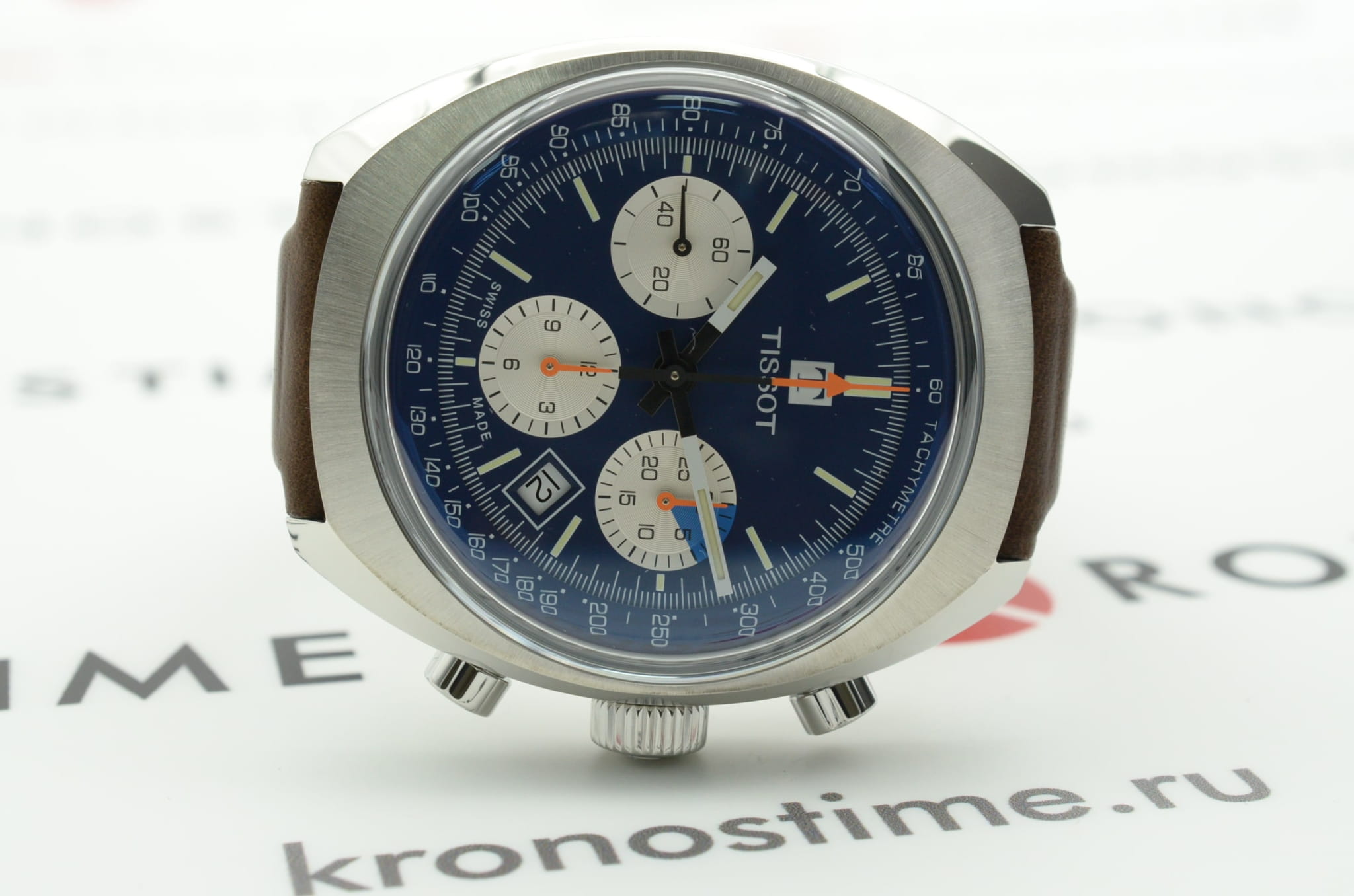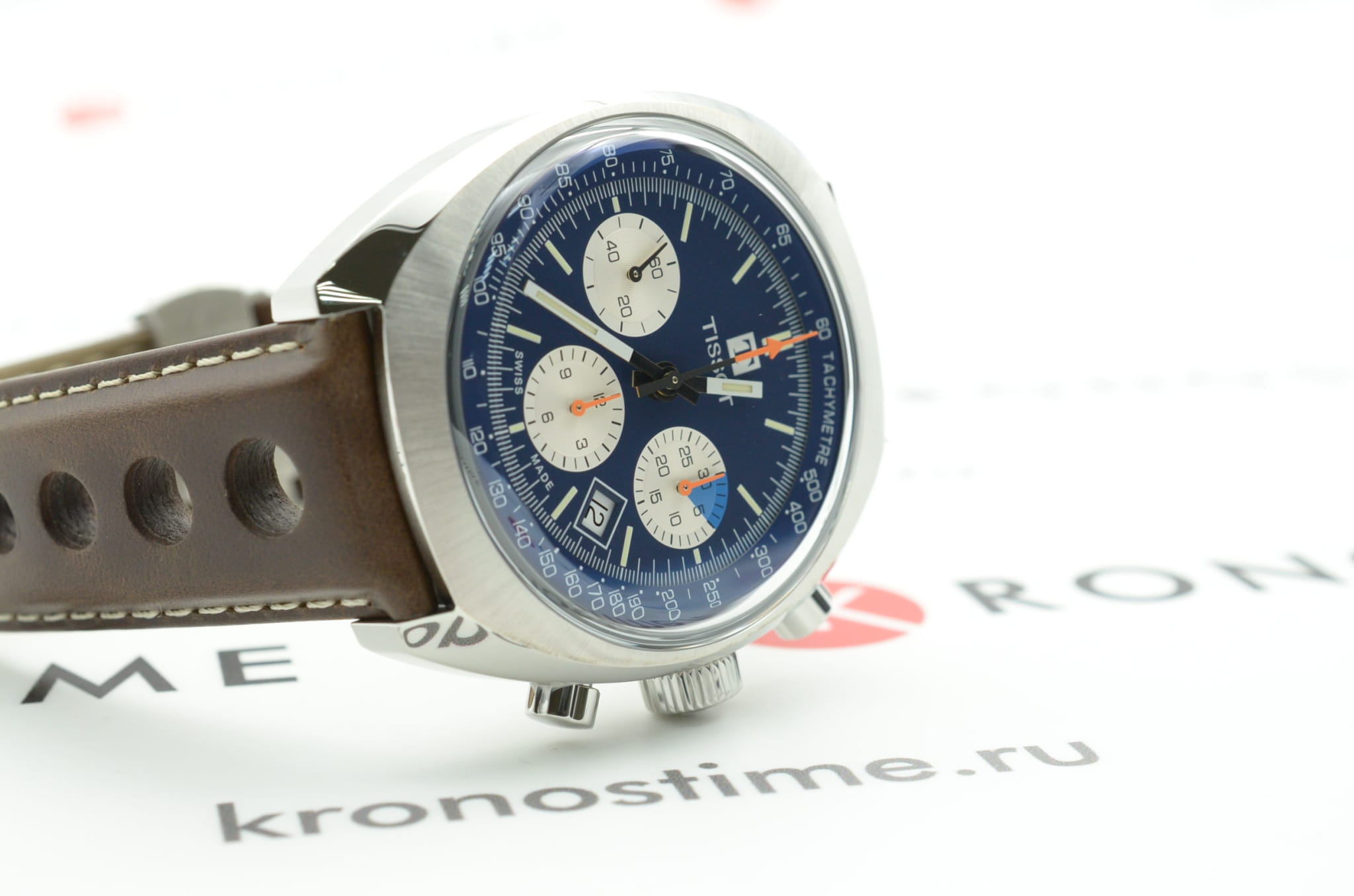 Наручные часы с оранжевыми деталями возрождают аксессуар Tissot Navigator 1973 года, спортивный хронографХронографФункция позволяет измерять отрезки времени с особой точностью: часы, минуты, секунды. Верным признаком хронографа является наличие на циферблате 3 дополнительных окошек-счётчиков. символизирует историческое партнёрство швейцарского бренда и автогоночной команды Kessel Classics. Модель выполнена в винтажном стиле, практически весь корпус матовый, исключение составляет передняя скошенная полированная поверхность. Часы оснащаются престижным автоматическим механизмом VALJOUX A05.H31 с запасом хода 60 часов и отделкой ротора женевские волны. Прозрачная задняя крышка. Коричневый ремешок с перфорацией из натуральной кожи. . Стекло из сапфира с антибликовой поверхностью. Секундомер, отображение числа. Габариты: 46,6 x 43 x 14,8 мм.