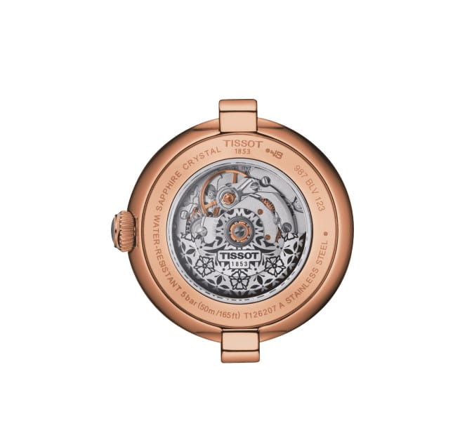 Женские швейцарские часы с сапфировым стеклом Tissot Bellissima Automatic T126.207.36.013.00, механизм Powermatic 48.111  с высокой точностью. Сапфировое стекло устойчивое к появлению царапин, обладающее высокой прозрачностью. Класс водозащиты: 50 метров, позволит защитить корпус от случайных брызг или капель дождя. Корпус часов изготовлен из стали с PVD-покрытием  розового цвета.