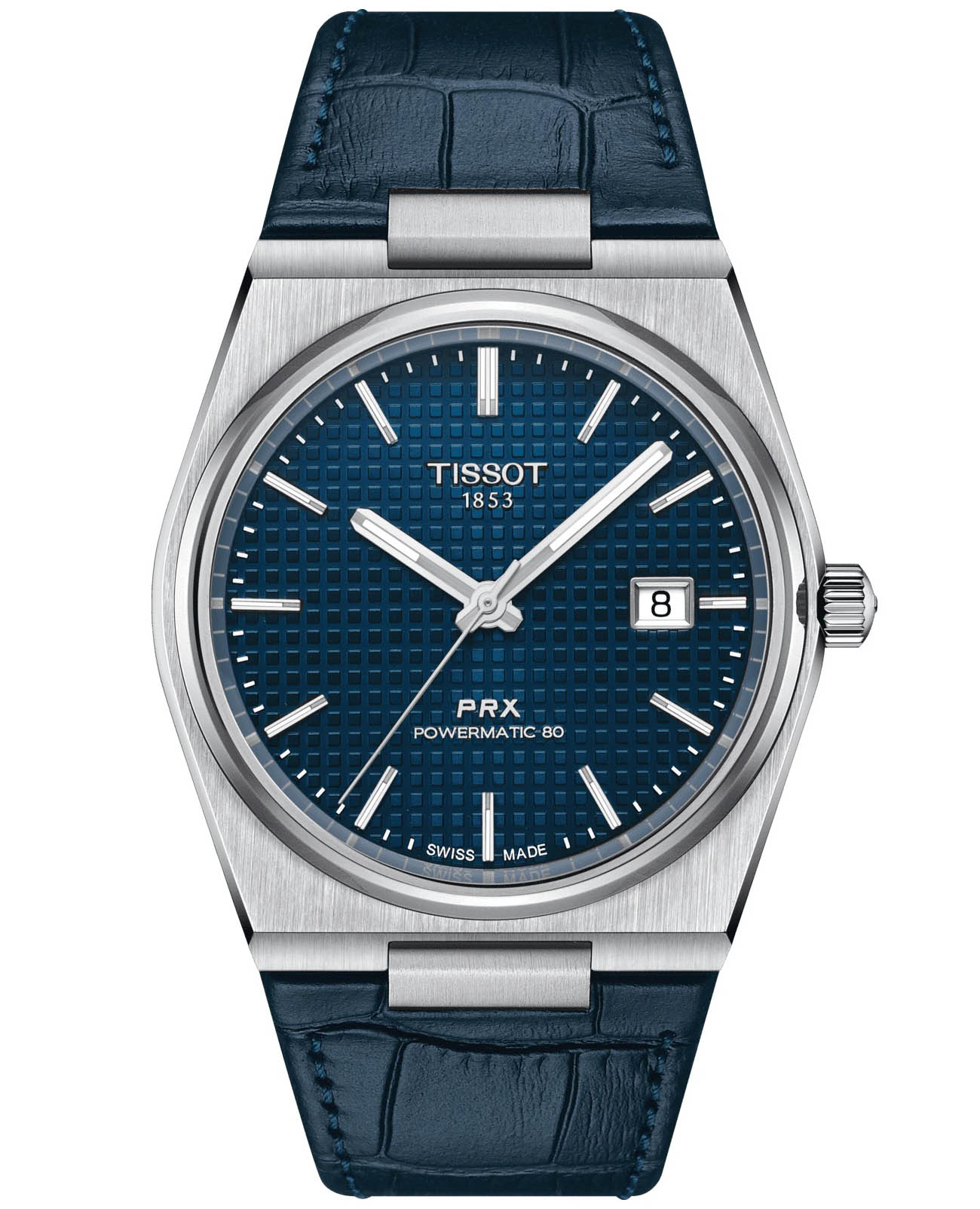 Мужские швейцарские часы с сапфировым стеклом Tissot PRX T137.407.16.041.00, механический механизм (автоматический калибр) с высокой точностью. Циферблат с люминесцентным покрытиемЛюминесцентное покрытиеПозволяет считывать показания времени в темноте. Производители наносят на стрелки, часовые индексы, безель или поверхность циферблата светонакопительный состав, дающий холодное свечение. стрелок и меток, дополнен сапфировым стекломСапфировое стеклоПрочный и надёжный материал из кристалла сапфира синтетического происхождения, характеризующийся особой твёрдостью и устойчивостью к царапинам и повреждениям., устойчивым к появлению царапин и обладающее высокой прозрачностью.. Класс водозащиты: 100 метров, позволит плавать, нырять и заниматься другими водными видами спорта. Корпус часов изготовлен из стали, серебристого цвета.