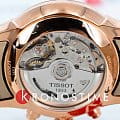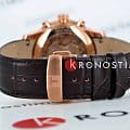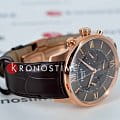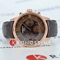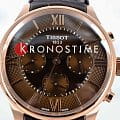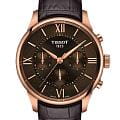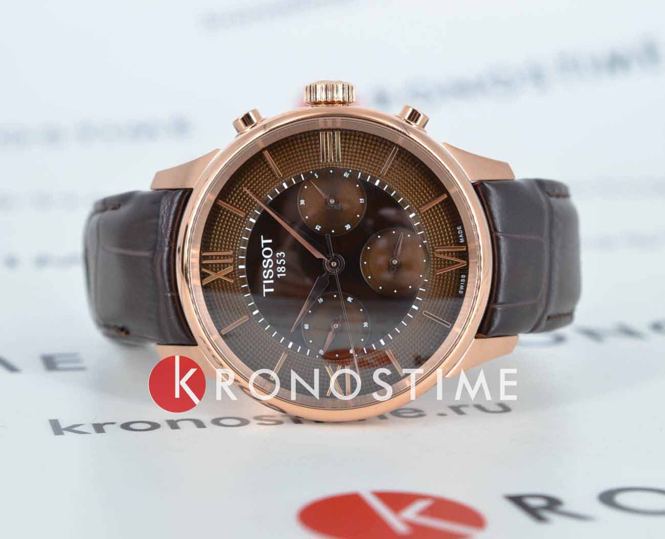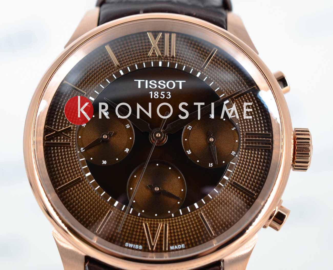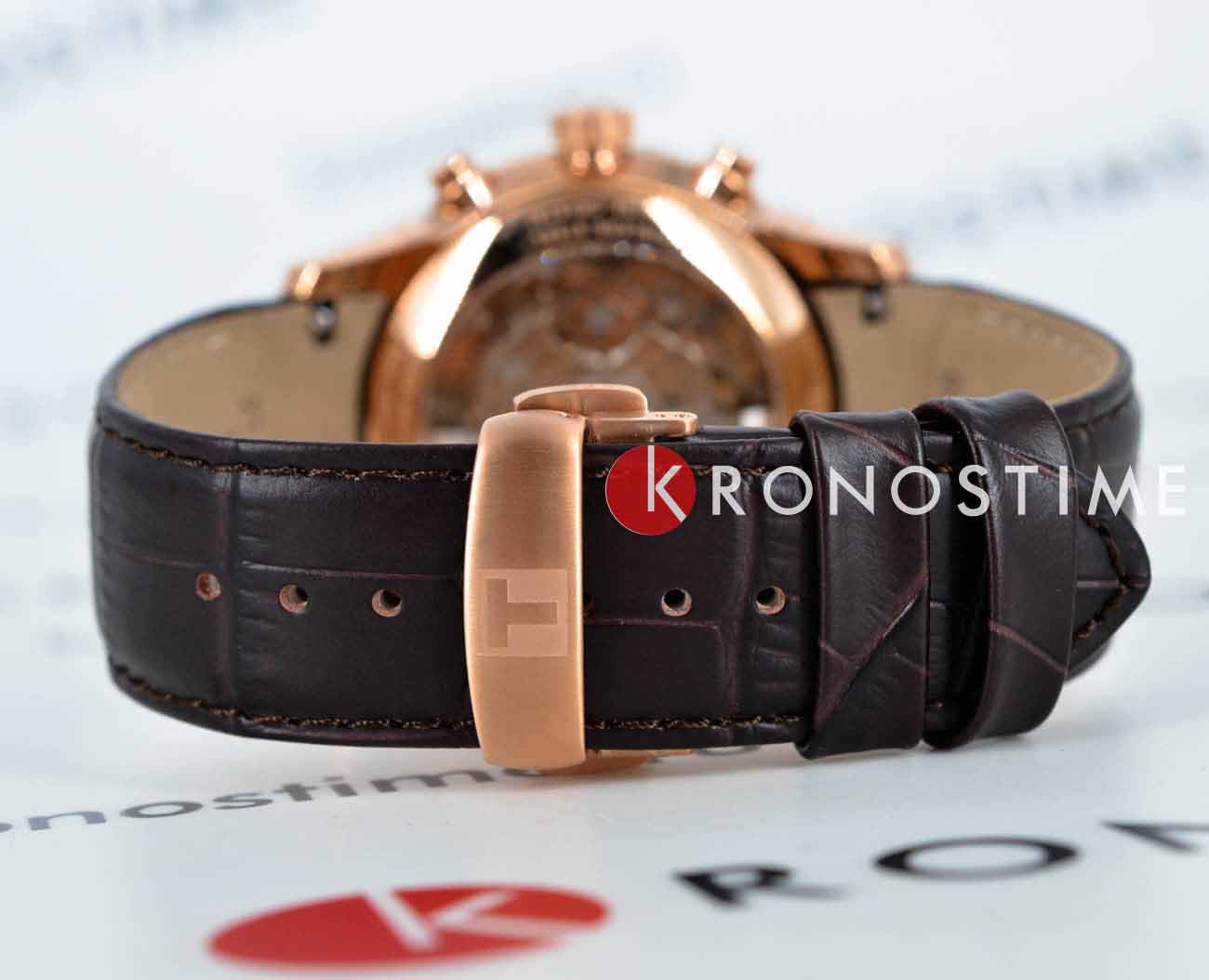 Tissot Chemin des Tourelles Automatic Chronograph (модель T139.462.36.298.00) – это элегантность и технологичность в одном аксессуаре. Корпус диаметром 42 мм выполнен из нержавеющей стали 316L с изысканным PVD-покрытиемPVDУльтратонкое покрытие наносится в технике вакуумного напыления, сочетает в себе нитрид титана особой прочности со слоем золота или оксида хрома. Несёт в себе декоративную или защитную функцию. в цвете розового золота, подчёркивающим статусность модели. Коричневый циферблат с римскими цифрами дополнен классическими стрелками, а его поверхность защищена сапфировым стекломСапфировое стеклоПрочный и надёжный материал из кристалла сапфира синтетического происхождения, характеризующийся особой твёрдостью и устойчивостью к царапинам и повреждениям. с антибликовым покрытиемАнтибликовое покрытиеСлой оксида металла в 0,13-0,3 микрон, благодаря которому стекло часов не бликует и не отражает свет. Антибликовое покрытие уменьшает отражение света в 10 раз, обеспечивая отличную читаемость показателей циферблата., обеспечивающим идеальную читаемость при любом освещении. Внутри скрывается надёжный автоматический калибр ValjouxValjouxПремиальный калибр от швейцарской компании ETA c уникальной отделкой механизма. Отличается увеличенным запасом хода от 45 до 60 часов, в зависимости от калибра, точность хода составляет +/- 5 секунд в сутки. с 68-часовым запасом хода. Функциональность модели дополняет хронографХронографФункция позволяет измерять отрезки времени с особой точностью: часы, минуты, секунды. Верным признаком хронографа является наличие на циферблате 3 дополнительных окошек-счётчиков. с 12-часовым, 30-минутным и 60-секундным счётчиками, а также центральной секундной стрелкой. Браслет из коричневой кожи завершает образ, а надёжная застёжка 'бабочка'Застёжка "бабочка"Такой вид застёжки дополняется предохранителями, помогающими избежать случайного раскрытия браслета. Обладают изящным исполнением. обеспечивает комфортное ношение. Водонепроницаемость 5 бар (50 метров) делает модель устойчивой к случайным брызгам и дождю.