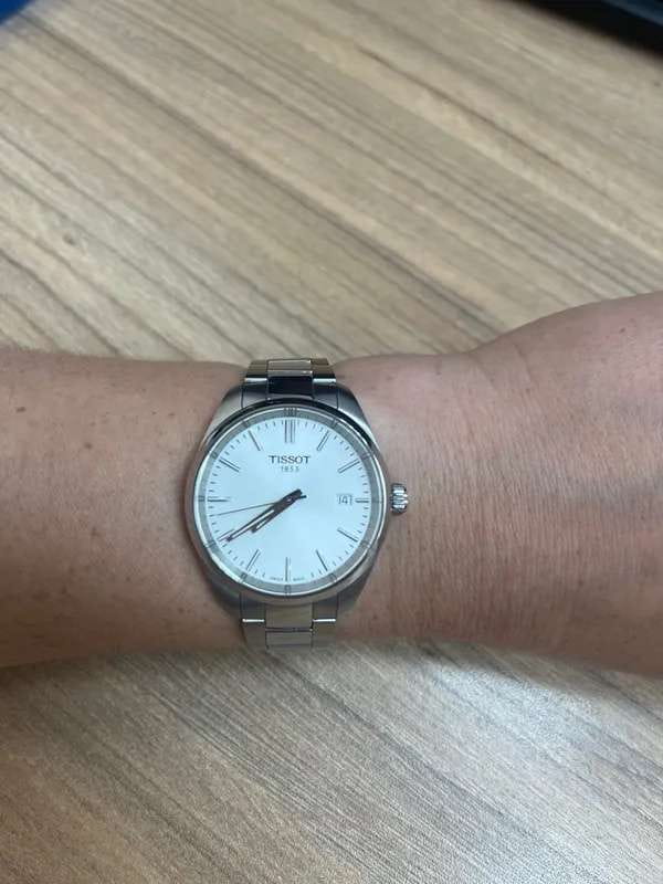 Женские швейцарские часы Tissot PR 100 T150.210.11.031.00, кварцевый механизм с высокой точностью. Сапфировое стеклоСапфировое стеклоПрочный и надёжный материал из кристалла сапфира синтетического происхождения, характеризующийся особой твёрдостью и устойчивостью к царапинам и повреждениям. устойчивое к появлению царапин, обладающее высокой прозрачностью. Корпус часов изготовлен из нержавеющей стали. Стрелки с люминесцентным покрытиемЛюминесцентное покрытиеПозволяет считывать показания времени в темноте. Производители наносят на стрелки, часовые индексы, безель или поверхность циферблата светонакопительный состав, дающий холодное свечение.. Окошко даты в положении 3 часов. Класс водозащиты: 100 метров, позволит плавать, нырять и заниматься другими водными видами спорта. Стальной браслет на застёжке-бабочке с кнопкамиЗастёжка "бабочка"Такой вид застёжки дополняется предохранителями, помогающими избежать случайного раскрытия браслета. Обладают изящным исполнением. .