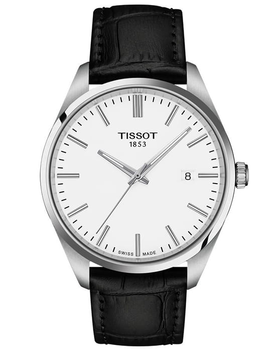 Tissot PR 100 40mm (T150.410.16.011.00) — классическая мужская модель, сочетающая строгий дизайн и швейцарскую надёжность. Корпус диаметром 40 мм изготовлен из нержавеющей стали, а элегантный белый циферблат с солнечным узором дополнен минималистичными метками и окошком даты на «3 часах». За точность отвечает швейцарский кварцевый механизм, а циферблат защищён сапфировым стекломСапфировое стеклоПрочный и надёжный материал из кристалла сапфира синтетического происхождения, характеризующийся особой твёрдостью и устойчивостью к царапинам и повреждениям., устойчивым к царапинам. Кожаный ремешок на стандартной застежке, что обеспечивает удобство и надёжность в ежедневной носке.