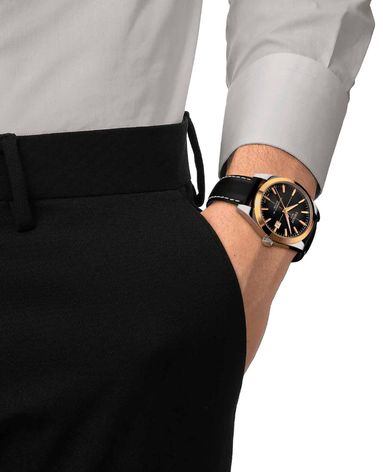 Аксессуар идеально впишется в деловой гардероб, станет лучшим вариантом для рабочих будней и переговоров с партнёрами. БезельБезельВнешний ободок, закрепляющий стекло. В спортивных часах так называется поворотное кольцо с делениями на циферблате, выполняет роль таймера – замеряет отрезки времени на шкале. Неподвижный безель – элемент декора. Однонаправленно вращающийся безель на дайверских часах позволяет фиксировать моменты погружения и выныривания на поверхность. сделан из золота 18K, что не может не понравиться ценителем эксклюзива и лаконичного стиля. Высокая точность хода обеспечивается благодаря механизму Powermatic 80 SiliciumPowermatic 80 SiliciumМеханизм обладает самой высокой точностью хода за всю историю Tissot. Дополняется уникальной кремниевой спиралью, минимизирующей воздействие магнитных полей и перепада температур. Сохраняется запас хода до 80 часов благодаря удлиненной заводной пружине и снижению трения в системе спуска. с уникальной кремниевой спиралью. Прозрачная задняя крышка. Ударопрочный корпус из нержавеющей стали. . Отображение текущего числа. Габариты: 40 x 40 x 10,6 мм.