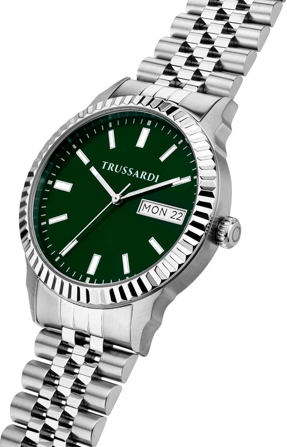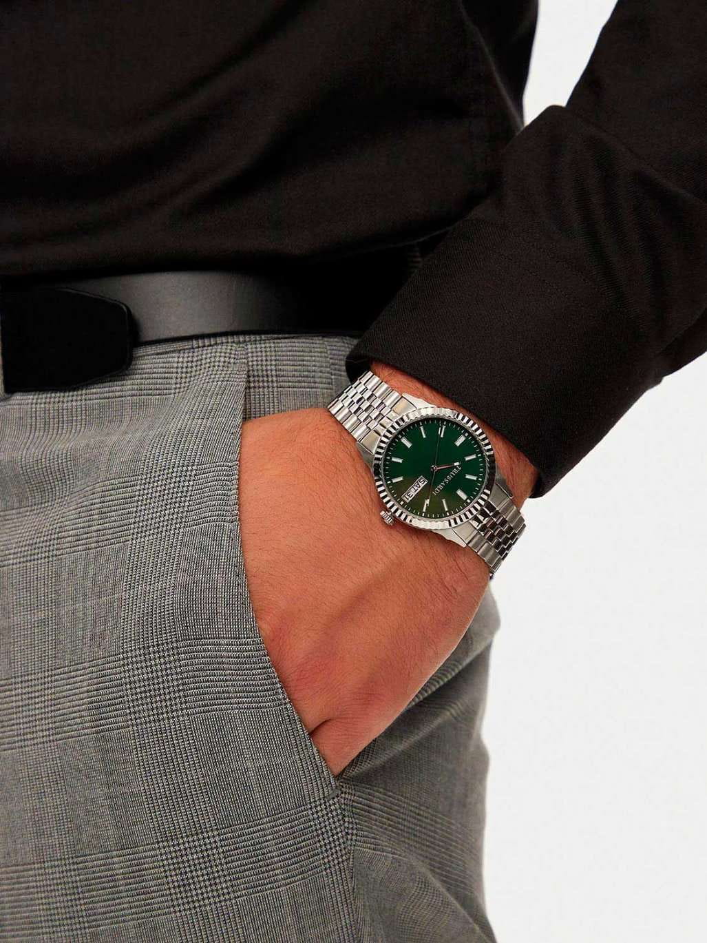 Итальянские мужские часы Trussardi T-Bent R2453141010 - это стильный мужской аксессуар, который сочетает элегантный дизайн и практичность. Корпус выполнен из нержавеющей стали, что обеспечивает долговечность и утончённый внешний вид. Надежное минеральное стеклоМинеральное стеклоМинеральное стекло представляет собой искусственно выращенный минерал кварца. Такое стекло отличается особой устойчивостью к повреждениям и царапинам. Уступает по некоторым качествам сапфировому стеклу. защищает циферблат от царапин и обеспечивает долговечность. Модель оснащена кварцевым механизмом, обеспечивающим высокую точность хода. Браслет из нержавеющей стали с раскладной застёжкойРаскладная застёжкаТакой тип застёжки используется только на браслетах из металла. Она никогда не раскрывается полностью, происходит разделение на 2 и более частей. Раскладывающая застёжка снизит вероятность потери часов к минимуму. обеспечивает комфортное ношение. Водозащита 50 метров позволит защитить корпус от случайных брызг или капель дождя.  Окошки даты и дня недели находятся в положении 3 часа. Стрелки и метки оснащены люминесцентным покрытиемЛюминесцентное покрытиеПозволяет считывать показания времени в темноте. Производители наносят на стрелки, часовые индексы, безель или поверхность циферблата светонакопительный состав, дающий холодное свечение., обеспечивающим отличную видимость даже при слабом освещении. Эта модель – отличный выбор для тех, кто ищет сочетание стиля, качества и функциональности. Часы станут не только полезным аксессуаром, но и выразительным элементом вашего имиджа.
