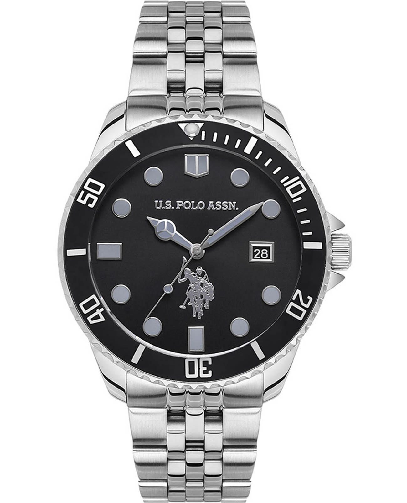 Мужские часы U.S. Polo Assn. Fundamental USPA1048-02, кварцевый механизм с высокой точностью. Минеральное стеклоМинеральное стеклоМинеральное стекло представляет собой искусственно выращенный минерал кварца. Такое стекло отличается особой устойчивостью к повреждениям и царапинам. Уступает по некоторым качествам сапфировому стеклу. устойчивое к появлению царапин, обладающее высокой прозрачностью. Центральные часовая, минутная и секундная стрелки. Индикация даты и дня недели. 12/24х часовой формат времени. Корпус изготовлен из нержавеющей стали. Класс водозащиты: 50 метров, позволит защитить корпус от случайных брызг или капель дождя. Стальной браслет на раскладной застёжкеРаскладная застёжкаТакой тип застёжки используется только на браслетах из металла. Она никогда не раскрывается полностью, происходит разделение на 2 и более частей. Раскладывающая застёжка снизит вероятность потери часов к минимуму.. Стрелки с люминесцентным покрытиемЛюминесцентное покрытиеПозволяет считывать показания времени в темноте. Производители наносят на стрелки, часовые индексы, безель или поверхность циферблата светонакопительный состав, дающий холодное свечение.. БезельБезельВнешний ободок, закрепляющий стекло. В спортивных часах так называется поворотное кольцо с делениями на циферблате, выполняет роль таймера – замеряет отрезки времени на шкале. Неподвижный безель – элемент декора. Однонаправленно вращающийся безель на дайверских часах позволяет фиксировать моменты погружения и выныривания на поверхность. с IP-покрытиемIP-покрытиеМетод ионного напыления. Демонстрирует повышенную устойчивость к истиранию, окислению и химическим веществам. Под воздействием высокого давления и температуры около 1500°C молекулы металла надёжно соединяются с частицами корпуса часов..