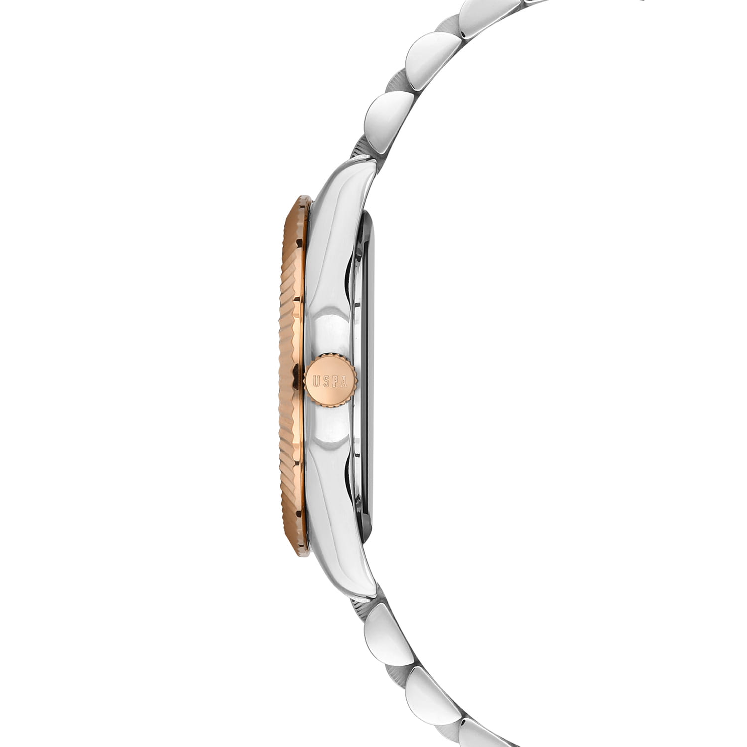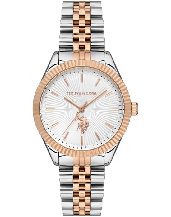 Женские часы U.S. Polo Assn. Fundamental USPA2063-05, кварцевый механизм с высокой точностью. Минеральное стеклоМинеральное стеклоМинеральное стекло представляет собой искусственно выращенный минерал кварца. Такое стекло отличается особой устойчивостью к повреждениям и царапинам. Уступает по некоторым качествам сапфировому стеклу. устойчивое к появлению царапин, обладающее высокой прозрачностью. Корпус изготовлен из нержавеющей стали. БезельБезельВнешний ободок, закрепляющий стекло. В спортивных часах так называется поворотное кольцо с делениями на циферблате, выполняет роль таймера – замеряет отрезки времени на шкале. Неподвижный безель – элемент декора. Однонаправленно вращающийся безель на дайверских часах позволяет фиксировать моменты погружения и выныривания на поверхность. из нержавеющей стали с IP-покрытиемIP-покрытиеМетод ионного напыления. Демонстрирует повышенную устойчивость к истиранию, окислению и химическим веществам. Под воздействием высокого давления и температуры около 1500°C молекулы металла надёжно соединяются с частицами корпуса часов.. Окошко даты в положении 3 часов. Класс водозащиты: 50 метров, позволит защитить корпус от случайных брызг или капель дождя. Стальной браслет с частичным с IP-покрытиемIP-покрытиеМетод ионного напыления. Демонстрирует повышенную устойчивость к истиранию, окислению и химическим веществам. Под воздействием высокого давления и температуры около 1500°C молекулы металла надёжно соединяются с частицами корпуса часов. на раскладной застёжкеРаскладная застёжкаТакой тип застёжки используется только на браслетах из металла. Она никогда не раскрывается полностью, происходит разделение на 2 и более частей. Раскладывающая застёжка снизит вероятность потери часов к минимуму..