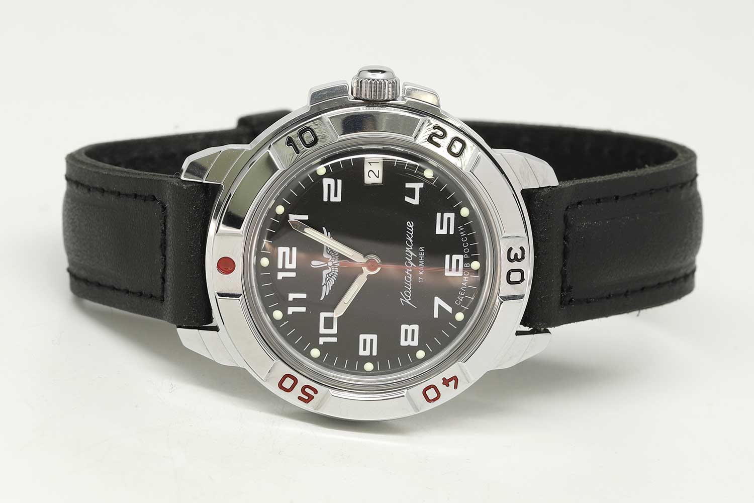 Легендарные Командирские часы с обновленным дизайном циферблата. Российские часы с историей. Командирские Классика. В механизме 17 камней. Запас хода 36 часов. Противоударное устройство оси баланса. Вращающийся безель. Завинчивающаяся заводная головка с защитой.