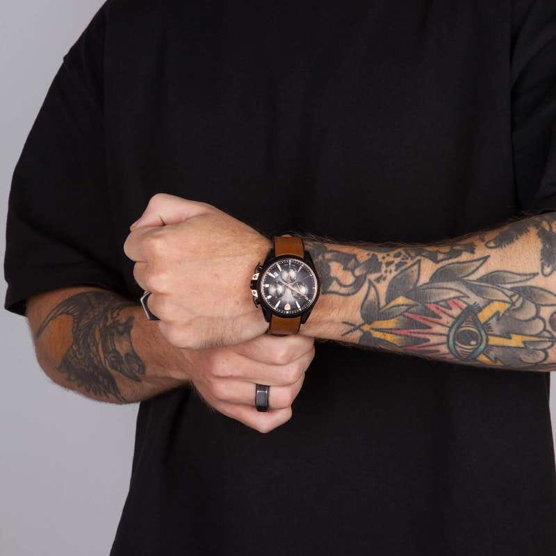 Мужские кварцевые часы-хронографХронографФункция позволяет измерять отрезки времени с особой точностью: часы, минуты, секунды. Верным признаком хронографа является наличие на циферблате 3 дополнительных окошек-счётчиков. с секундомеромСекундомерСекундоме́р — прибор, способный измерять интервалы времени с точностью до долей секунды. Wainer WA.16101-C сочетает элегантный дизайн и высокое качество исполнения. Корпус выполнен из нержавеющей стали 316L серебристого цвета, диаметром 44 мм и толщиной 11 мм, обеспечивает прочность и долговечность. Циферблат с метками в виде штрихов выполнен по технологии Sunray (солнечные лучи) и украшен фирменным логотипом Wainer. Сапфировое стеклоСапфировое стеклоПрочный и надёжный материал из кристалла сапфира синтетического происхождения, характеризующийся особой твёрдостью и устойчивостью к царапинам и повреждениям. защищает дисплей от царапин и механических повреждений. Секундная стрелка на конце декорирована логотипом бренда - буквой W. Окошко даты находится в положении между отметками 4 и 5 часов. Стрелки с люминесцентным покрытиемЛюминесцентное покрытиеПозволяет считывать показания времени в темноте. Производители наносят на стрелки, часовые индексы, безель или поверхность циферблата светонакопительный состав, дающий холодное свечение., улучшая читаемость в условиях недостаточного освещения. Кожаный ремешок на силиконовой основе и стандартной застёжкой обеспечивает комфортное ношение. Водонепроницаемость до 100 метров делает модель подходящей для плавания и активного образа жизни. Wainer — это стильный и надежный аксессуар для тех, кто ценит швейцарское качество и современные технологии.