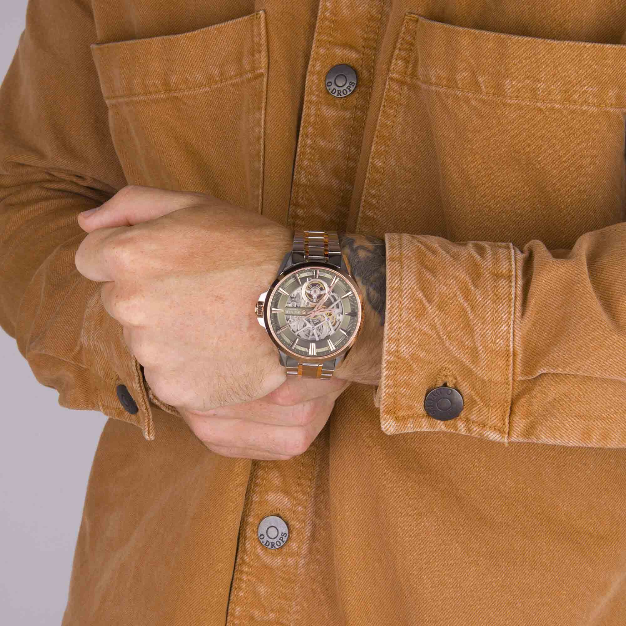 Мужские механические часы Wainer Masters Edition WA.25511-C — это стильный аксессуар, сочетающий в себе швейцарское качество и функциональность. Модель выполнена из нержавеющей стали 316L с диаметром корпуса 46 мм и толщиной 13 мм, что делает её прочной и устойчивой к царапинам. Циферблат зелёного цвета дополнен , а его поверхность защищена сапфировым стекломСапфировое стеклоПрочный и надёжный материал из кристалла сапфира синтетического происхождения, характеризующийся особой твёрдостью и устойчивостью к царапинам и повреждениям., устойчивым к повреждениям. Прозрачная задняя крышка позволяет наблюдать за работой механизма, подчёркивая внимание к деталям. Часы оснащены автоматическим механизмом Landeron Depa DP2072, обеспечивающим запас хода и минимальное обслуживание. Водонепроницаемость позволяет использовать модель при мытье рук или под лёгким дождём. Браслет из стали 316L стального цвета шириной 22-19 мм оснащён Раскладная застёжкаРаскладная застёжкаТакой тип застёжки используется только на браслетах из металла. Она никогда не раскрывается полностью, происходит разделение на 2 и более частей. Раскладывающая застёжка снизит вероятность потери часов к минимуму., обеспечивающей комфорт и надёжную фиксацию на запястье. Эти часы станут универсальным аксессуаром для тех, кто ценит сочетание стиля, функциональности и швейцарского мастерства — идеальный выбор для повседневной носки и активного образа жизни.