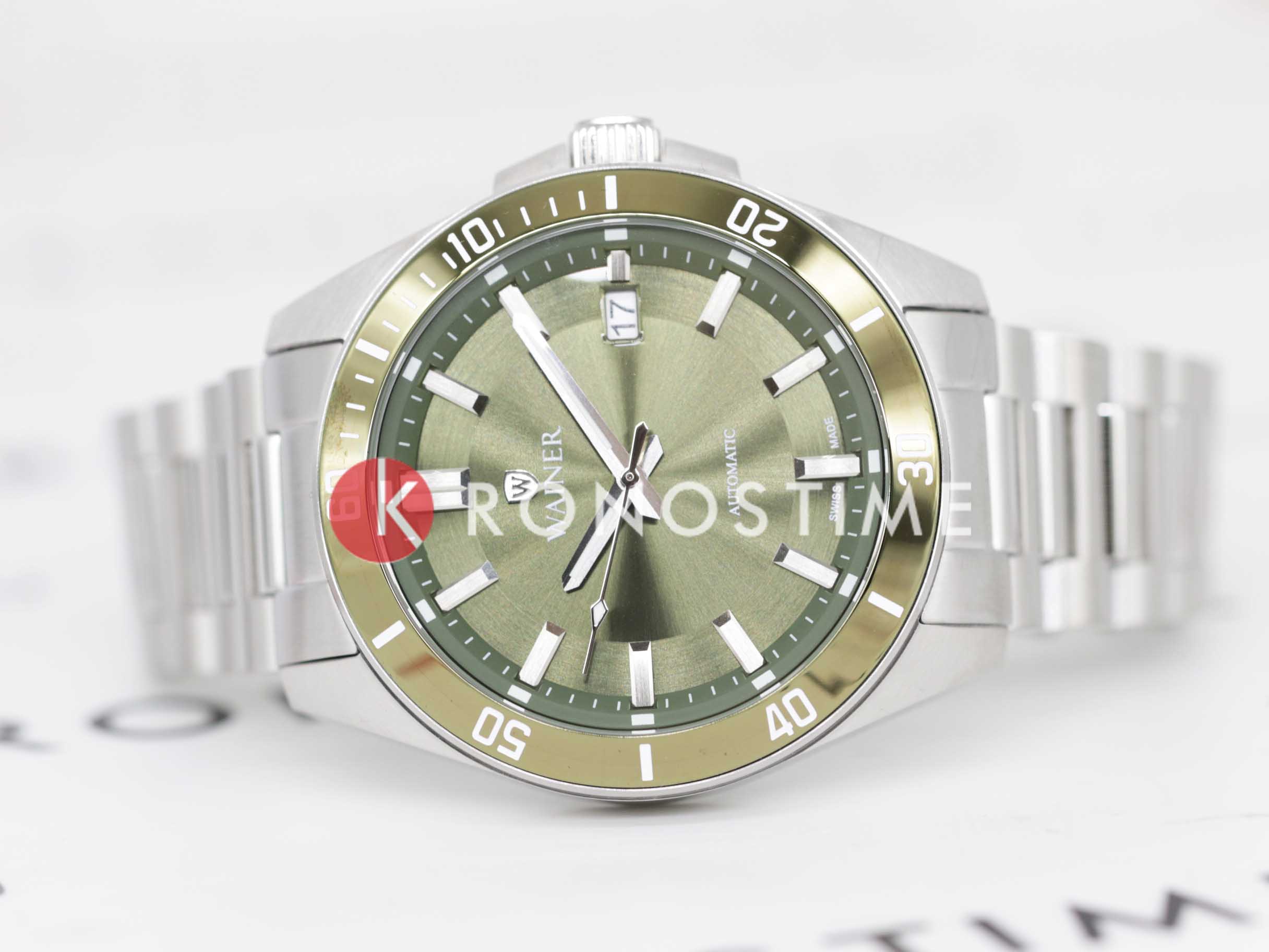 Модель Wainer WA.25540-D сочетает элегантность, швейцарское качество и современный дизайн. Корпус выполнен из нержавеющей стали 316L и безельБезельВнешний ободок, закрепляющий стекло. В спортивных часах так называется поворотное кольцо с делениями на циферблате, выполняет роль таймера – замеряет отрезки времени на шкале. Неподвижный безель – элемент декора. Однонаправленно вращающийся безель на дайверских часах позволяет фиксировать моменты погружения и выныривания на поверхность. с PVD-покрытиемPVDУльтратонкое покрытие наносится в технике вакуумного напыления, сочетает в себе нитрид титана особой прочности со слоем золота или оксида хрома. Несёт в себе декоративную или защитную функцию., подчеркивающим роскошный стиль часов. Циферблат оформлен в сдержанном классическом стиле, а сапфировое стеклоСапфировое стеклоПрочный и надёжный материал из кристалла сапфира синтетического происхождения, характеризующийся особой твёрдостью и устойчивостью к царапинам и повреждениям. защищает его от царапин и механических повреждений, обеспечивая долговечность. Часы оснащены автоматическим механизмом, обеспечивающим надежность и точность хода. Браслет из нержавеющей стали на раскладной застёжкойРаскладная застёжкаТакой тип застёжки используется только на браслетах из металла. Она никогда не раскрывается полностью, происходит разделение на 2 и более частей. Раскладывающая застёжка снизит вероятность потери часов к минимуму. гарантирует комфорт и надежную фиксацию. Водонепроницаемость до 100 метров, позволит плавать, нырять и заниматься другими водными видами спорта. Wainer WA.25540-D — стильный аксессуар для мужчин, ценящих сочетание классики, надежности и утонченного швейцарского качества.