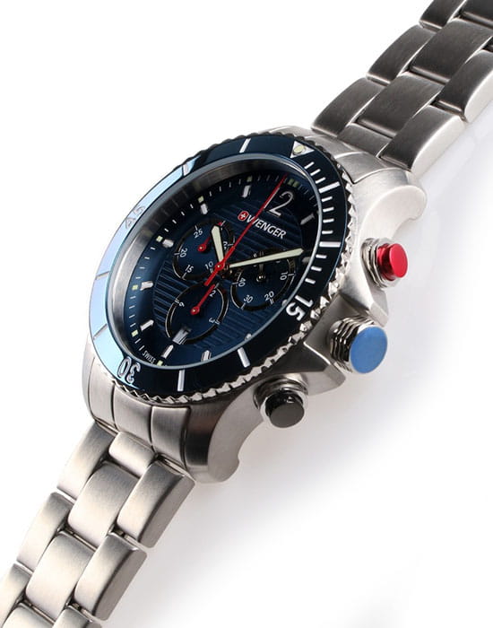 Мужские швейцарские часы с хронографом Wenger 01.0643.111, кварцевый механизм с высокой точностью. Класс водозащиты: 200 метров, позволит плавать, нырять и заниматься другими водными видами спорта. Корпус часов изготовлен из стали, цвета.