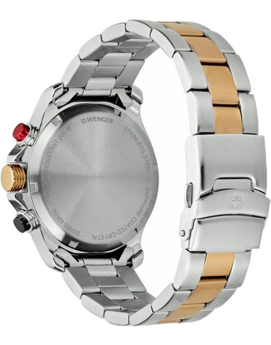 Мужские швейцарские часы с хронографом Wenger 01.0643.113, кварцевый механизм с высокой точностью. Класс водозащиты: 200 метров, позволит плавать, нырять и заниматься другими водными видами спорта. Корпус часов изготовлен из стали, цвета.