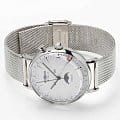 Мужские наручные часы Zeppelin LZ129 Hindenburg 8076М1 сочетают в себе классический дизайн и надежность современных технологий. Модель обладает круглым корпусом, изготовленным из нержавеющей стали без дополнительного покрытия, что обеспечивает высокую устойчивость к внешним воздействиям. Браслет выполнен из стали миланского плетения на раскладном замкеРаскладной замокДанный вариант застежки используется только на часах с металлическим браслетом. Отличительная особенность такого крепления в том, что длина браслета становится универсальной и вы можете самостоятельно отрегулировать нужный вам размер – застежка просто двигается по браслету часов., гарантирующей комфортное ношение и стильный внешний вид. Серебристый циферблат с накладными знаками и оригинальными черными стрелками делает модель особенно привлекательной. Для защиты используется минеральное стеклоМинеральное стеклоМинеральное стекло представляет собой искусственно выращенный минерал кварца. Такое стекло отличается особой устойчивостью к повреждениям и царапинам. Уступает по некоторым качествам сапфировому стеклу., обеспечивающее прочную защиту от царапин. Часы работают на кварцевом механизме, что гарантирует точное время без необходимости подзаводки. Водонепроницаемость часов достигает 5 атмосфер (50 метров), что позволяет использовать их во время плавания на поверхности, однако не рекомендуется для глубоководного дайвинга или занятий водными видами спорта с высоким уровнем активности.