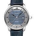 Мужские наручные автоматические часы Zeppelin ZEP-85623 из коллекции Friedrichshafen Automatic выполнены в классическом стиле и сочетают техническое совершенство с эстетикой ручной работы. Корпус круглой формы изготовлен из полированной нержавеющей стали, дополнен фирменными кольцами по краю — узнаваемым элементом бренда Zeppelin.Механизм — механический с автоподзаводом, оснащённый 21 камнем, с частотой 21 600 полуколебаний в час и запасом хода до 42 часов. Прозрачная задняя крышка позволяет наблюдать за работой механизма, что подчёркивает их техническую проработку.Циферблат выполнен по технологии гильоше с узором Clous de Paris , добавляющим благородства дизайну. Цвет циферблата — голубой гильоше с серебристыми элементами. Метки представлены арабскими цифрами. Окошко даты расположено в положении 3 часов, указатель дня недели — в положении 12 часов. Стрелки часов оснащены люминесцентным покрытиемЛюминесцентное покрытиеПозволяет считывать показания времени в темноте. Производители наносят на стрелки, часовые индексы, безель или поверхность циферблата светонакопительный состав, дающий холодное свечение. для отличной читаемости в темноте.Часы оснащены выпуклым минеральным стеклом повышенной прочности K1 минеральное стеклоМинеральное стеклоМинеральное стекло представляет собой искусственно выращенный минерал кварца. Такое стекло отличается особой устойчивостью к повреждениям и царапинам. Уступает по некоторым качествам сапфировому стеклу., устойчивым к мелким повреждениям. Заводная головка — рифлёная, из нержавеющей стали. Ремешок — из синей натуральной кожи с текстурой, имитирующей крокодилову кожу, дополнен классической застёжкой из нержавеющей стали.Водозащита — 50WR , что позволяет использовать часы в повседневных условиях без риска повреждения от случайных брызг воды. Габаритные размеры: диаметр 40 мм, толщина 12 мм, вес — 68 граммов. Это стильный и надёжный аксессуар для ценителей механических часов и традиций часового мастерства.