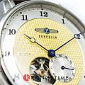Часы Zeppelin 8566-5 —  это элегантные мужские часы с автоподзаводом, которые порадуют любителей классики и точной механики. Корпус из нержавеющей стали серебристого цвета идеально сочетается с золотистым циферблатом, украшенным гильошированием. Уникальное окошко в виде сердечка позволяет любоваться работой механизма. Часы также оснащены дополнительным циферблатом с секундной стрелкой. Закаленное минеральное стеклоМинеральное стеклоМинеральное стекло представляет собой искусственно выращенный минерал кварца. Такое стекло отличается особой устойчивостью к повреждениям и царапинам. Уступает по некоторым качествам сапфировому стеклу. защищает циферблат, а коричневый кожаный ремешок придает ему элегантности. Кроме того, водонепроницаемость часов составляет 50 метров, так что вы можете спокойно принимать в них душ. Эти часы подойдут для повседневного ношения и станут ярким акцентом в вашем наряде.